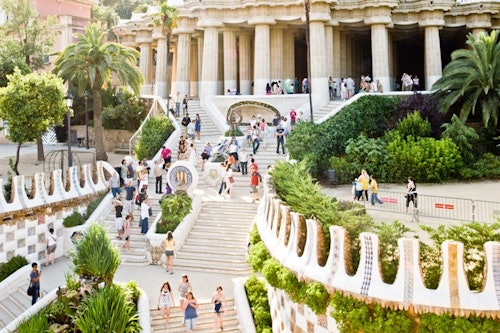 Préparez-vous à une rencontre passionnante avec la basilique en franchissant ses portes massives. Explorez l'intérieur inspiré par la nature, avec ses colonnes impressionnantes qui créent une forêt de pierres. Découvrez le symbolisme chrétien caché dans chaque structure de pierre. Après la basilique, rendez-vous au célèbre parc Güell. Profitez d'une visite guidée qui offre un aperçu unique des conceptions novatrices de Gaudí et admirez les vues panoramiques de Barcelone. Les monuments éparpillés dans le parc créent une atmosphère magique, ce qui en fait un lieu incontournable.