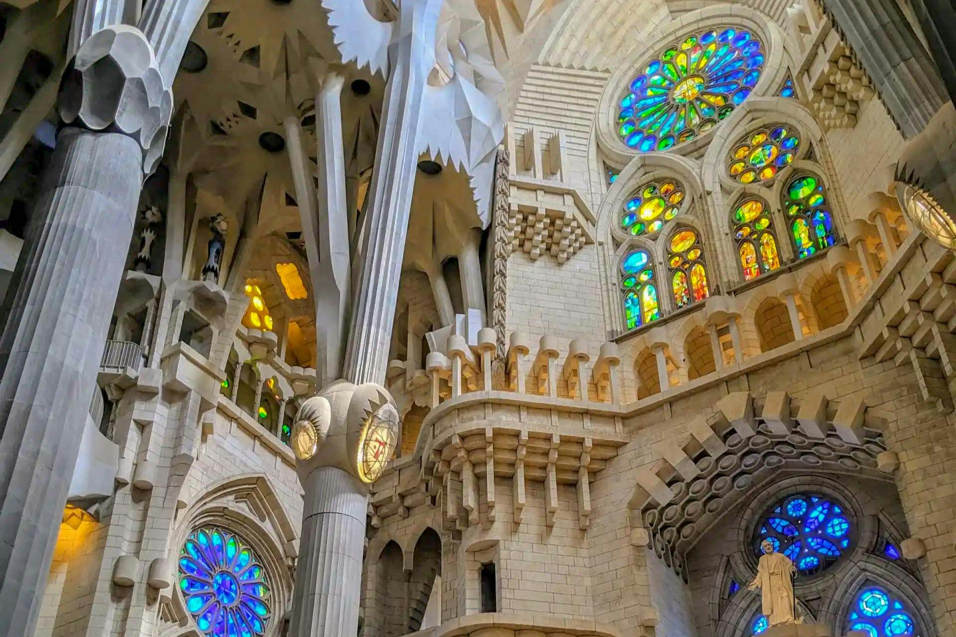 Participez au voyage qui dévoile la construction en cours de la magnifique basilique, en partageant des récits passionnants sur la date d'achèvement prévue. Découvrez la lignée d'artisans, d'architectes et d'artistes qui ont consacré leur vie à donner vie à la vision de Gaudí. L'aventure commence par une introduction captivante avant de vous conduire à l'entrée de la grande basilique. Passez le contrôle de sécurité et préparez-vous à plonger dans l'histoire intrigante de la façade de la Nativité, la première section achevée de la basilique. En vous aventurant à l'intérieur, préparez-vous à être envoûté par le spectacle des vitraux éclatants et des colonnes en forme de branches qui s'étendent jusqu'au plafond. L'intention de Gaudí était de créer un intérieur qui ressemble à une promenade dans une forêt, avec une lumière rayonnante qui descend comme la lumière du soleil à travers les feuilles de la forêt. À la sortie de la basilique, la visite raconte l'histoire de la façade de la Passion, marquée par ses sculptures austères et anguleuses. Cette façade, comme la plus grande partie de la Sagrada Familia, a été construite après la mort de Gaudí. Plongez dans la magie du monde de Gaudí et réservez dès maintenant cette expérience inoubliable !