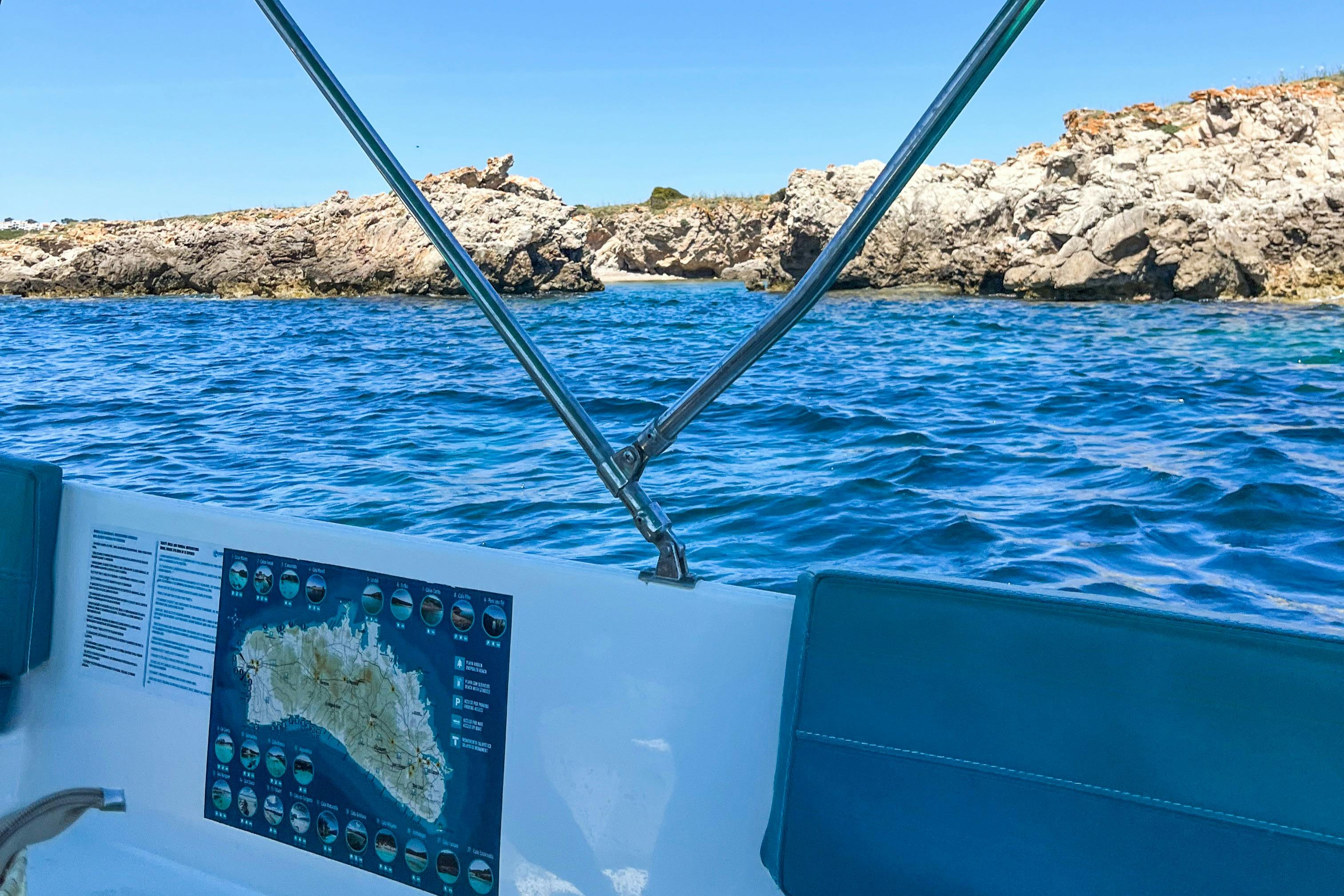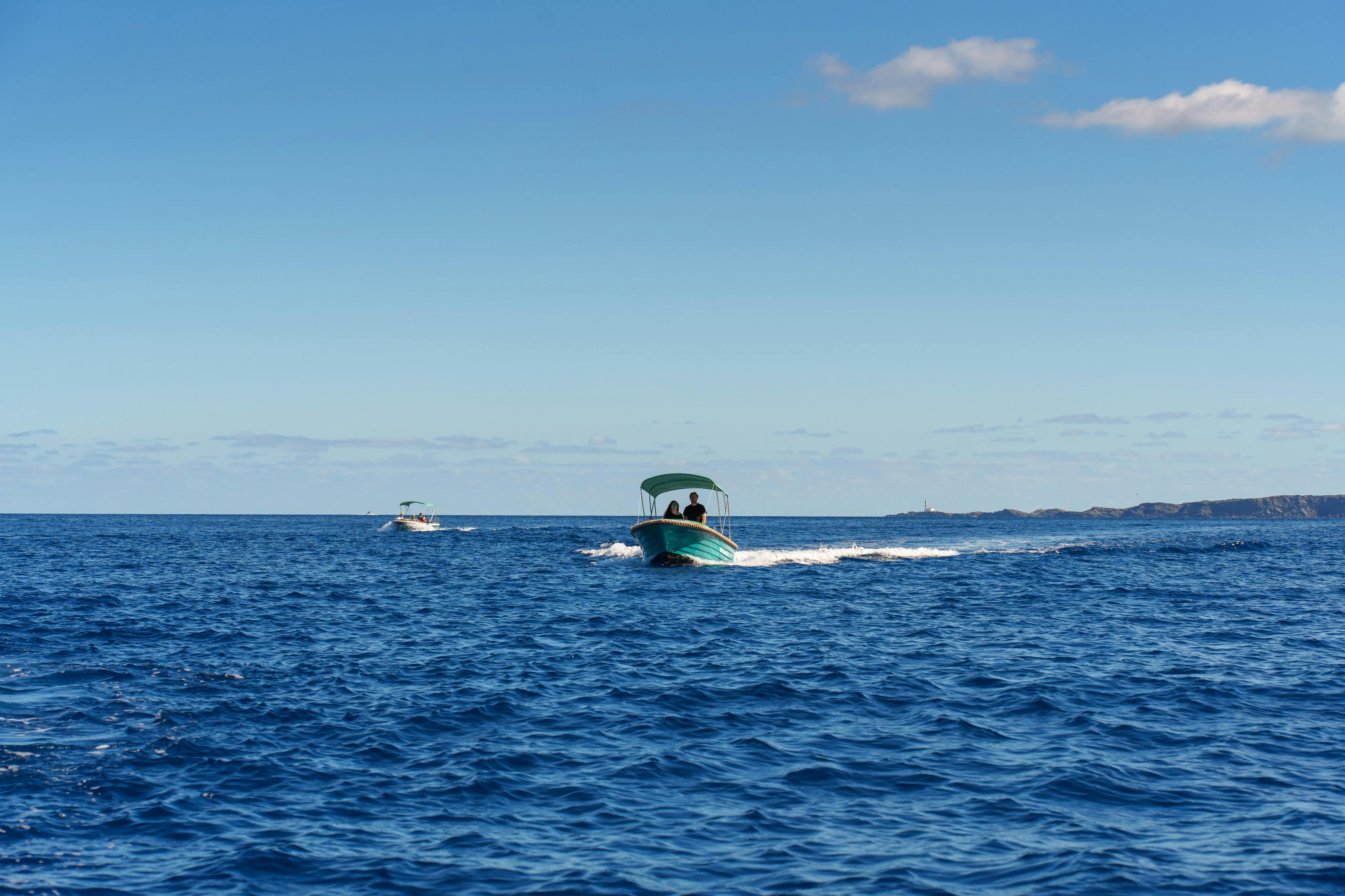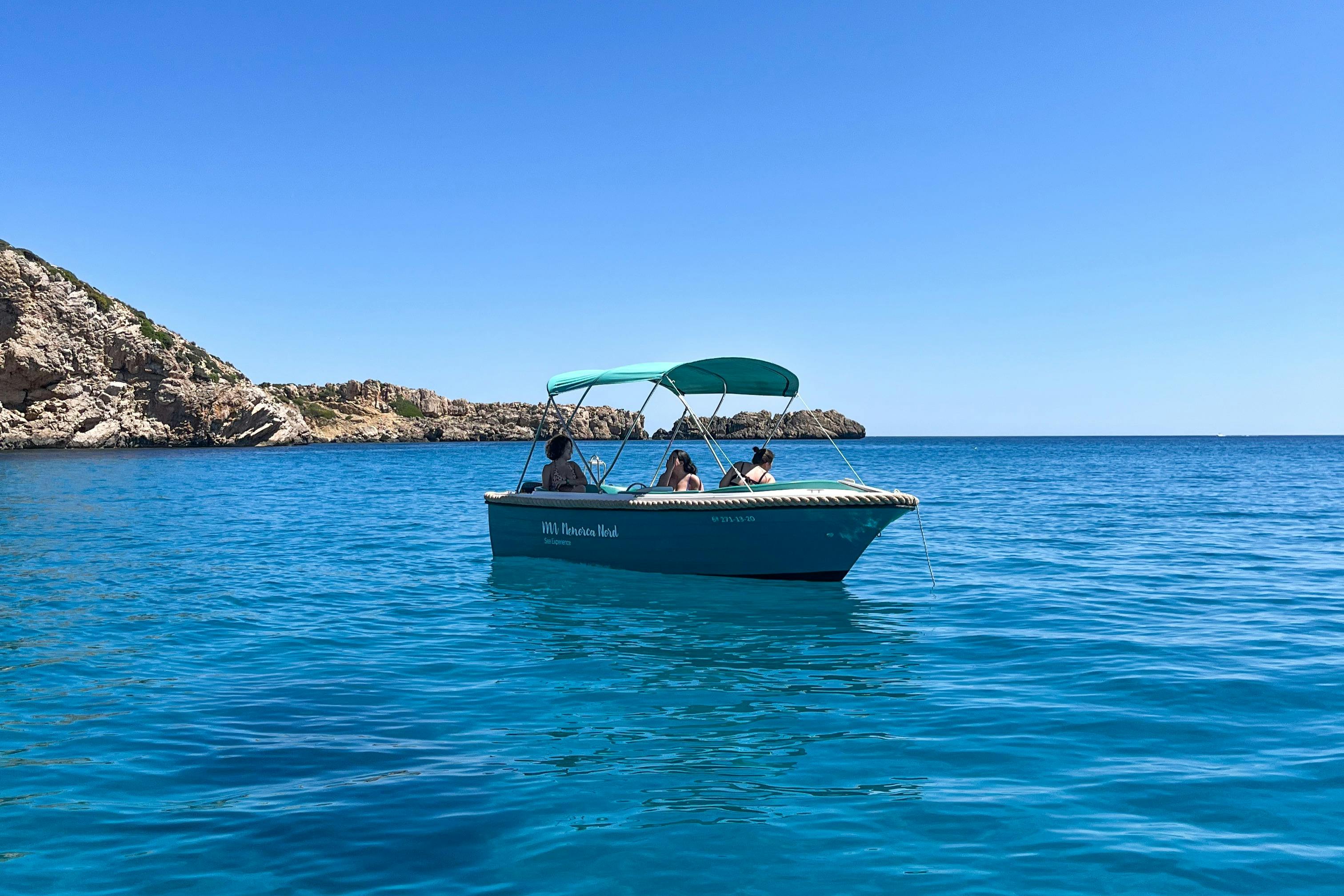 Louez de petits bateaux sans avoir besoin d'un brevet nautique ou d'une expérience préalable. Explorez la côte de Minorque à votre rythme avec la compagnie de votre choix. Voyagez de Punta Pantinat à Far de Favàritx, en commençant par le Puerto Addaya. Visitez des sites tels que la baie d'Addaia et ses îlots, les plages de Savinar de Mongofre, S'Arenalet, Cala Pudent, Cala d'en Tusqueta, Arenal de Son Saura, et bien d'autres encore. Les participants recevront des instructions de sécurité de base avant de partir. Un bateau de sauvetage sera disponible en cas de problème pendant l'excursion.