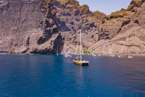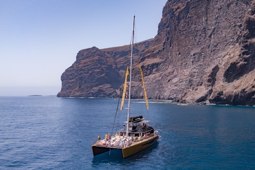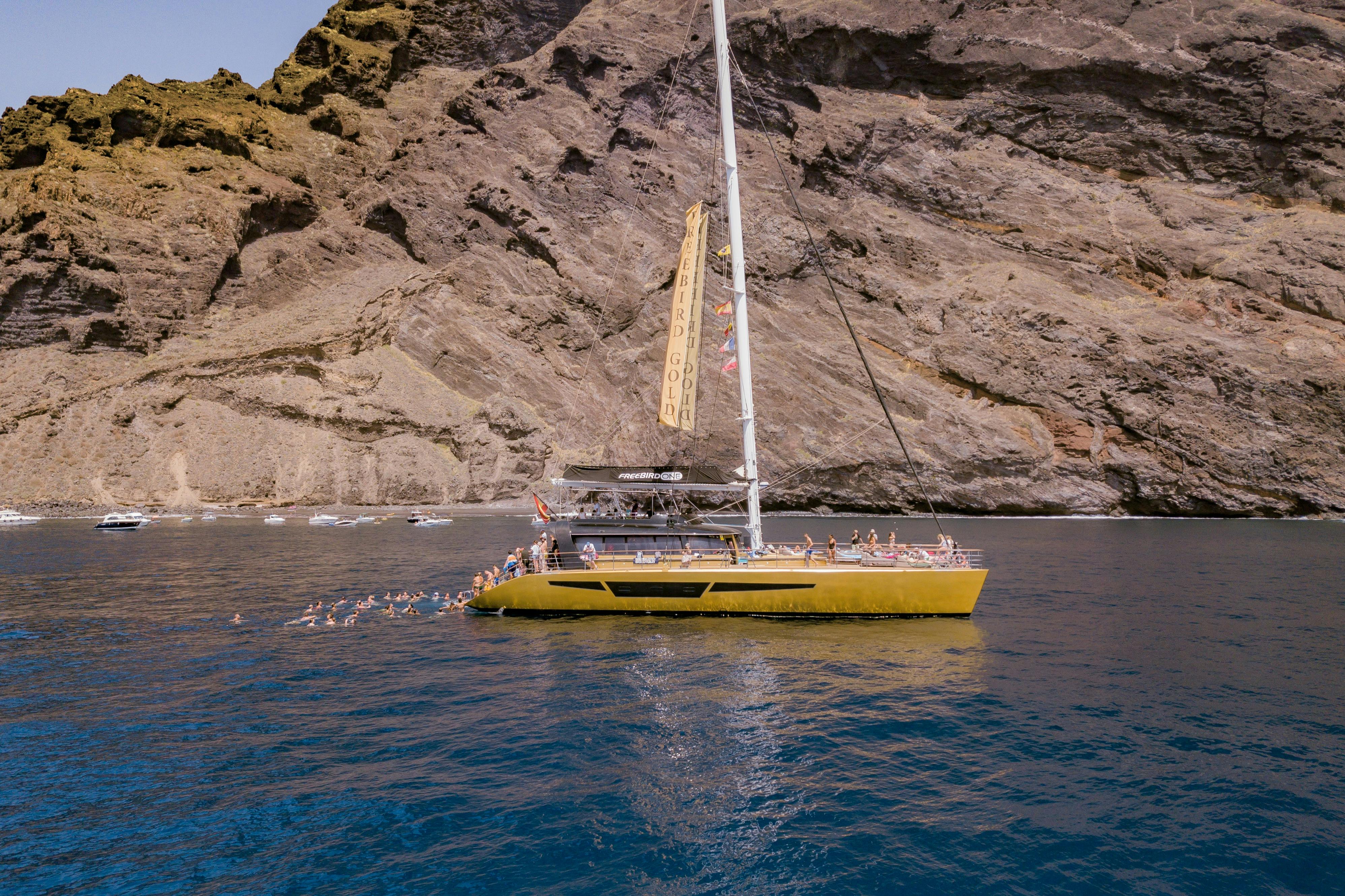 Cette excursion exaltante de 4,5 heures pour observer les baleines et les dauphins à bord du catamaran Freebird à Masca vous place au meilleur endroit pour rencontrer de nouveaux amis à nageoires ! Partant tous les jours de Puerto Colón, Costa Adeje à Tenerife, votre catamaran mettra le cap sur Los Gigantes et Masca, prêt à repérer de magnifiques baleines et des dauphins enjoués dans leur habitat naturel. Au fur et à mesure, vos guides vous donneront des informations fascinantes sur les caractéristiques, les comportements et les migrations de ces incroyables espèces de cétacés, vous immergeant ainsi dans leur monde captivant. Après avoir observé la liberté et la beauté des globicéphales, des grands dauphins et des dauphins tachetés, il est temps de se détendre sous le chaud soleil. Vous pouvez aussi plonger dans les eaux rafraîchissantes pour nager dans un décor naturel à couper le souffle.