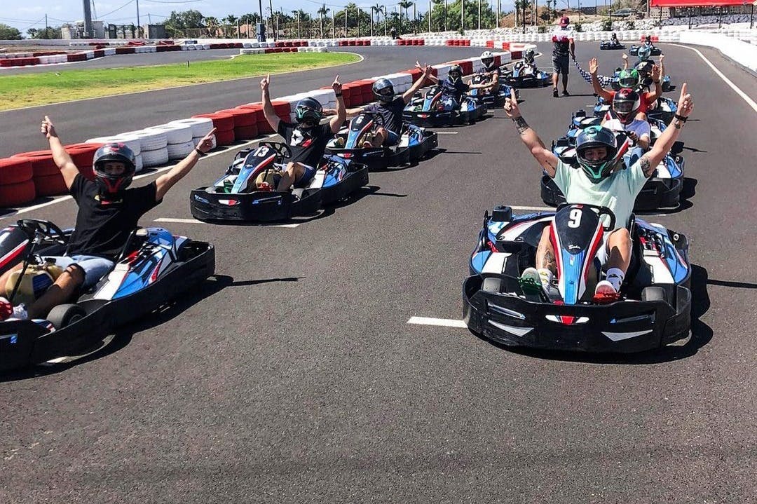 Préparez-vous et partez avec des billets en ligne pour le karting en plein air à Las Americas à Tenerife - la piste la plus rapide du pays. Prenez les virages, descendez les lignes droites et mettez la pédale douce grâce à un puissant moteur Honda à 4 temps de 270 cm3. Dépassez vos concurrents à des vitesses allant jusqu'à 21 km/h et tentez de battre des records de vitesse à chaque tour. Parfait pour les adultes et les familles - aucune expérience de la course n'est requise !