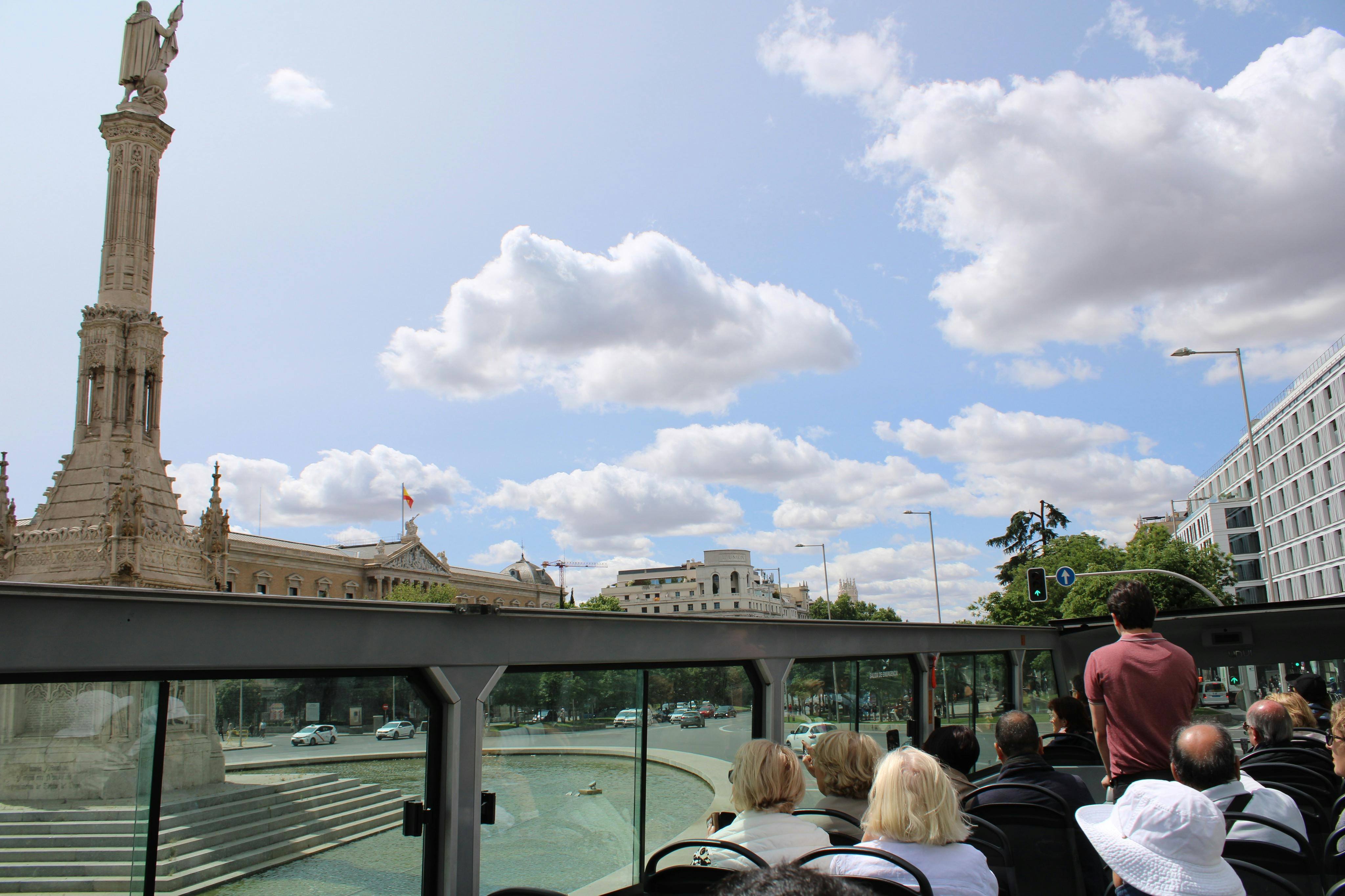 Découvrez la riche histoire de Madrid grâce à des commentaires guidés en anglais et en espagnol, tout en admirant les vues incontournables de la ville depuis le pont supérieur d'un bus à impériale à toit ouvert. Découvrez les sites emblématiques de Madrid, du palais royal au parc El Retiro, en passant par le temple de Debod, la Puerta de Alcalá, la gare d'Atocha, la fontaine de Cibeles et la cathédrale de l'Almudena. Vous avez le choix entre un billet flexible de 24 ou 48 heures avec montée et descente ou une visite panoramique en boucle de 90 minutes. Descendez à certains arrêts pour découvrir des musées et des galeries d'art de renommée mondiale comme le Museo Nacional del Prado, le Museo Nacional Centro de Arte Reina Sofía ou le Thyssen-Bornemisza National Museum, ou pour visiter les barrios uniques de la ville, notamment Chueca et Malasaña.