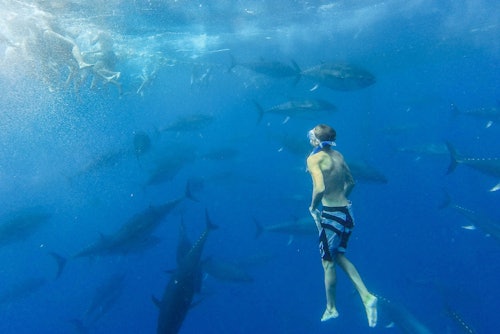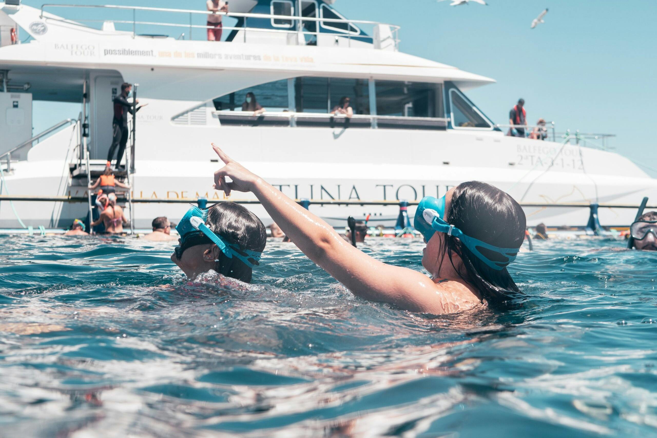 Participez à un voyage unique conçu pour ceux qui recherchent quelque chose de différent. Nagez parmi des centaines de thons géants, chacun mesurant plus de 2 m de long et pesant jusqu'à 250 kg, dans une zone sécurisée située à seulement 2 miles de la côte de l'Ametlla de Mar. Commencez par une confortable promenade en catamaran depuis le port de l'Ametlla de Mar. Un guide expert vous renseignera sur l'écosystème marin, la biologie du thon et l'élevage durable du thon. Regardez une vidéo détaillée sur l'histoire et la pêche de ces géants des mers. En arrivant aux fermes d'élevage de thons, faites de la plongée en apnée parmi les grands poissons dans leur environnement naturel. Retour au port après la séance de plongée avec masque et tuba.