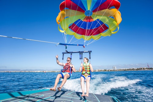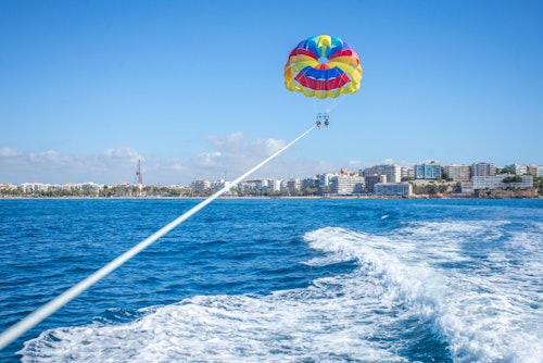 Survolez la mer Méditerranée, les pieds décollant de la surface. Admirez le littoral sous un nouvel angle et profitez des vues panoramiques. Le parachute ascensionnel vous permet d'observer la côte depuis le ciel tout en étant doucement tracté par un parachute. Cette activité sur la Costa Daurada vous permet de flotter au-dessus de la mer, combinant l'excitation du vol avec des moments de calme au-dessus de l'eau. Idéal pour les amateurs de vues côtières uniques, le parachute ascensionnel à Salou est une façon spéciale de voir la beauté naturelle de la côte catalane. Vous serez tiré par un bateau et vous vous élèverez jusqu'à une hauteur qui vous permettra d'admirer la côte d'en haut.