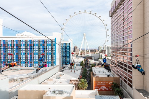 Avis à tous les aspirants super-héros, voici le moyen idéal pour continuer vos entraînements lorsque votre cape est au pressing. Amusez-vous, défoulez-vous et posez pour les touristes lors de cette activité en survolant la promenade du LINQ à 35 m de hauteur ! * Accrochez-vous bien, et c'est parti pour une expérience unique à Las Vegas : un vol en tyrolienne et un atterrissage sur une roue géante. C'est un oiseau ? C'est un avion ? Non, c'est vous !