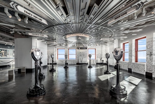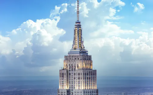 La construction de l'Empire State Building fut achevée en 1931, et son style Art déco n'a pas perdu son charme. Le personnel, que vous reconnaitrez à son uniforme bordeaux, vous accueillera avec le sourire dans ce bâtiment emblématique de la ville. En entrant, vous serez déjà émerveillé par les fresques qui ornent les murs.