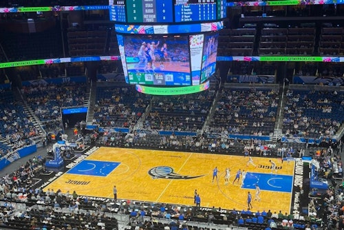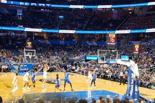 Regardez les Orlando Magic jouer au basket au Kia Center. Profitez d'une place assignée avec votre billet et voyez les plus grandes stars de la NBA en action. Le Kia Center, qui accueille les Orlando Magic, possède une "couronne" unique sur son toit qui s'illumine pendant les événements. Sa technologie avancée comprend un grand tableau vidéo central pour les fans. L'arène offre également une variété de concessions et d'installations, ainsi que des divertissements le jour du match. Que vous y assistiez seul ou avec des amis, aller voir les Orlando Magic jouer au basket dans le centre-ville d'Orlando est une expérience à ne pas manquer.