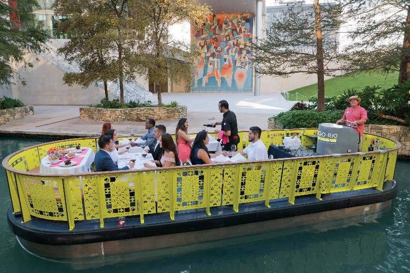 Imaginez : une flotte de bateaux fluviaux électriques respectueux de l'environnement, peints dans des teintes vibrantes inspirées de l'art populaire mexicain, prêts à vous emmener à l'aventure le long de l'emblématique San Antonio River Walk. Bienvenue à GO RIO ! Vous pouvez suivre une visite guidée, participer à une croisière fluviale spécialisée ou affréter une excursion. Envie d'une aventure autonome ? Montez à bord de la navette fluviale GO RIO et partez du centre-ville jusqu'à Museum Reach pour découvrir la véritable âme de San Antonio. Tous les bateaux GO RIO sont conformes aux normes ADA et accessibles à tous. Vous avez soif ? Le bar à boissons et le point de vente GO RIO, situés près de la billetterie du Rivercenter, servent des margaritas glacées, des piña coladas, des bières et des sodas rafraîchissants. Et pendant que vous y êtes, pourquoi ne pas acheter un souvenir ou de la crème solaire pour une journée sous le soleil texan ? Avec GO RIO, rien ne presse. Les billets ne sont pas liés à un lieu, une date ou une heure spécifiques. Vous n'avez qu'à vous présenter quand l'envie de voyager vous prend et vous voilà prêt à remonter le fleuve !