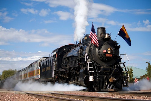 Voyager en train jusqu'au Grand Canyon est une expérience inoubliable. Installez-vous et admirez le paysage à couper le souffle défiler par la fenêtre du Grand Canyon Railway, tout en profitant des spectacles des cow-boys et des musiciens avec violons, guitares, banjos et accordéons !
