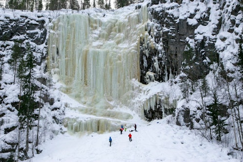 Entrez dans un monde magique et hivernal au cœur de la nature, à quelques heures du centre animé de Rovaniemi. Korouoma se transforme en un paradis de glace chaque hiver et séduit les visiteurs par ses vues envoûtantes sur de magnifiques chutes d'eau gelées. L'aventure commence par un trajet pittoresque en minibus de Rovaniemi à Korouoma. Vous ferez une randonnée sur les magnifiques sentiers qui mènent aux majestueuses chutes d'eau. À mi-chemin, vous dégusterez un barbecue traditionnel lapon, accompagné d'une boisson réconfortante. Après avoir parcouru une distance de 4 à 5 km, vous serez émerveillés par la vue spectaculaire des chutes d'eau gelées. Si la chance vous sourit, vous pourrez même apercevoir des aventuriers escaladant les falaises glacées. Plus qu'une simple randonnée, cette excursion est une escapade hivernale magique qui vous fascinera et vous laissera des souvenirs impérissables.