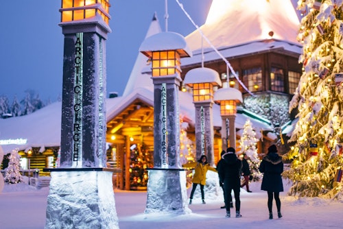 Explorez le village du Père Noël avec de nombreux produits de Noël et de Laponie à rapporter avec vous, et saluez le Père Noël dans son bureau ! Rejoignez les lutins qui travaillent dans le bureau de poste du Père Noël et envoyez des cartes postales à tous vos amis avec un timbre spécial. Cet endroit vous donne un sentiment de Noël joyeux et gai tout au long de l'année. Vous aurez la chance de voir les rennes et de visiter le cercle polaire. Une ligne blanche indiquant le cercle polaire est peinte en travers du parc. Vous pouvez la traverser et entrer officiellement dans la zone arctique. Un délicieux déjeuner sera servi au restaurant du Père Noël, où vous pourrez apprécier le goût du buffet traditionnel finlandais.