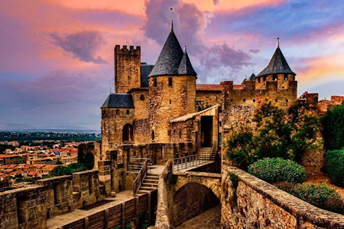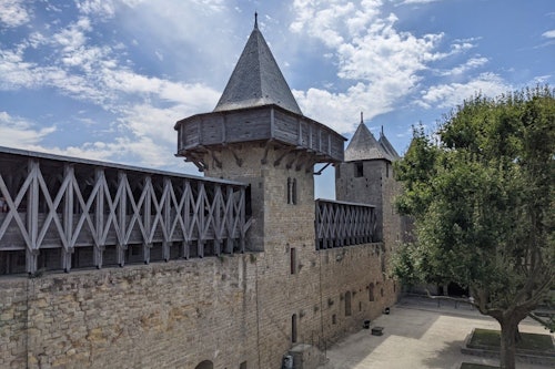Promenez-vous dans la plus grande forteresse médiévale d'Europe et découvrez son histoire avec un historien du Moyen-Âge. Vous entendrez des récits de batailles et de la vie quotidienne à l'intérieur des anciens murs et vous verrez l'architecture, y compris la porte de Narbonne, les tours de guet et les portes de poterne. Commencez la visite audio par la porte de Narbonne et explorez les rues pavées, les tours et les barbacanes. Découvrez le Château Comtal et d'autres structures historiques. La visite se termine à la porte de Narbonne par un résumé de l'histoire de la forteresse.
