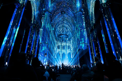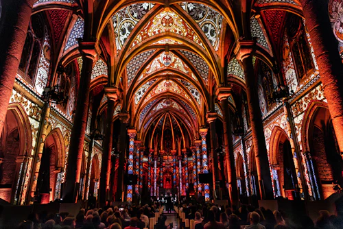 LUMINISCENCE a attiré plus de 300 000 spectateurs à Bordeaux, Paris et Lille. Elle arrive aujourd'hui à Nice pour une série de représentations. Prenez place dans la nef et écoutez l'esprit tutélaire. Écoutez les chœurs en direct et le son 3D dans l'acoustique de Notre-Dame-de-l'Assomption.