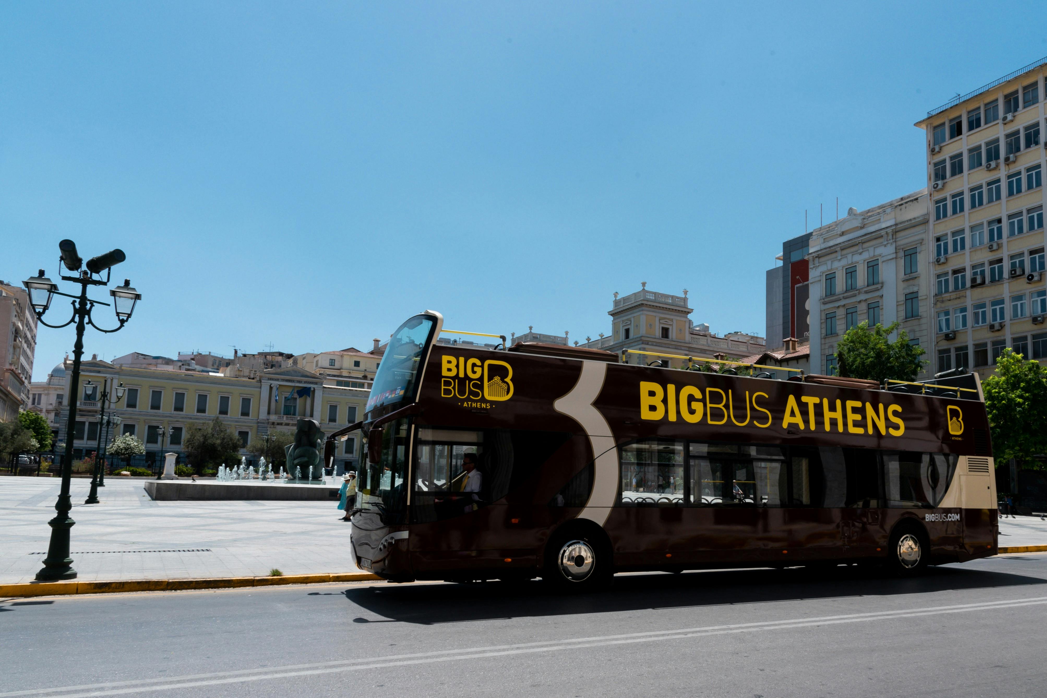 Vous voulez voir le meilleur d'Athènes, du Pirée et des superbes plages de la Riviera ? C'est le billet qu'il vous faut. Plongez au cœur de la civilisation antique, découvrez les secrets de la vieille ville d'Athènes et du Pirée, puis profitez de la beauté de la côte baignée de soleil de Glyfada et Vouliagmeni. Approchez-vous des sites emblématiques tels que l'Acropole et le Parthénon, le musée de la Nouvelle Acropole, le temple de Zeus, Plaka et Monastiraki, et bien d'autres encore ! Il suffit de monter ou de descendre à l'un des 40 arrêts du bus à impériale jaune vif. Ce pass vous donne accès à toutes les lignes, ce qui vous permet de changer d'itinéraire et de profiter au maximum des trois options passionnantes proposées. Des représentants amicaux, compétents et multilingues sont prêts à vous aider et à vous donner des conseils d'initiés, et des guides audio attrayants sont disponibles en 14 langues différentes !