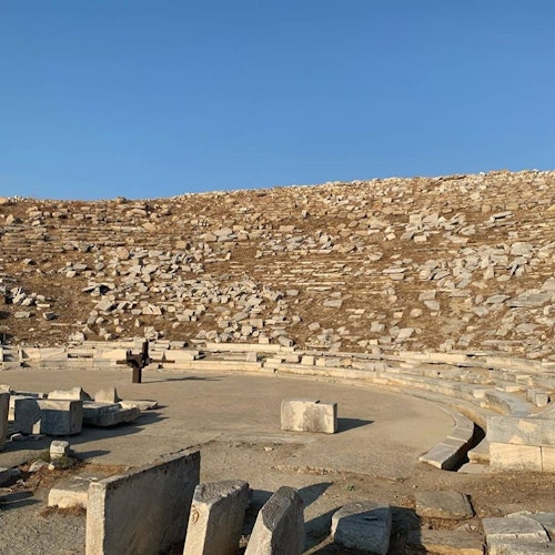 Après une croisière de 45 minutes, vous arriverez à Délos. Délos, l'un des sites archéologiques les plus importants de Grèce, était un important centre religieux, politique et commercial au premier millénaire avant notre ère. Historiquement considéré comme le berceau d'Apollon et d'Artémis, deux des dieux majeurs de la mythologie grecque, il n'est pas étonnant que Délos soit classé par l'UNESCO. Passez deux heures à explorer ce site antique avec un guide professionnel anglophone ou choisissez de le découvrir par vous-même. Quoi qu'il en soit, vous profiterez de 30 minutes de temps libre pour visiter le musée, ou simplement pour vous détendre tout en admirant cette île enchanteresse, pleine de légendes et d'histoires anciennes. Toute personne visitant Mykonos devrait passer par Délos !