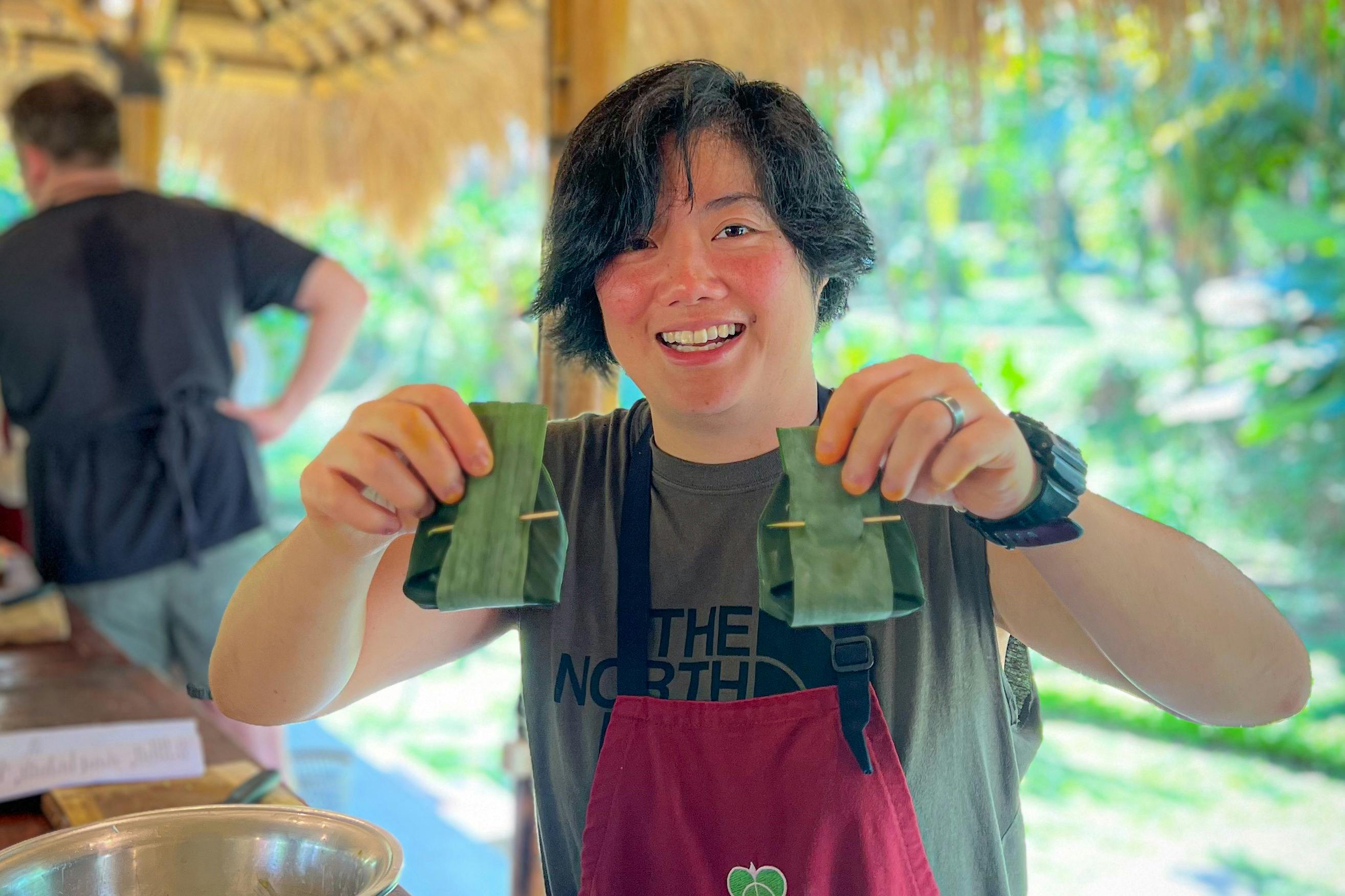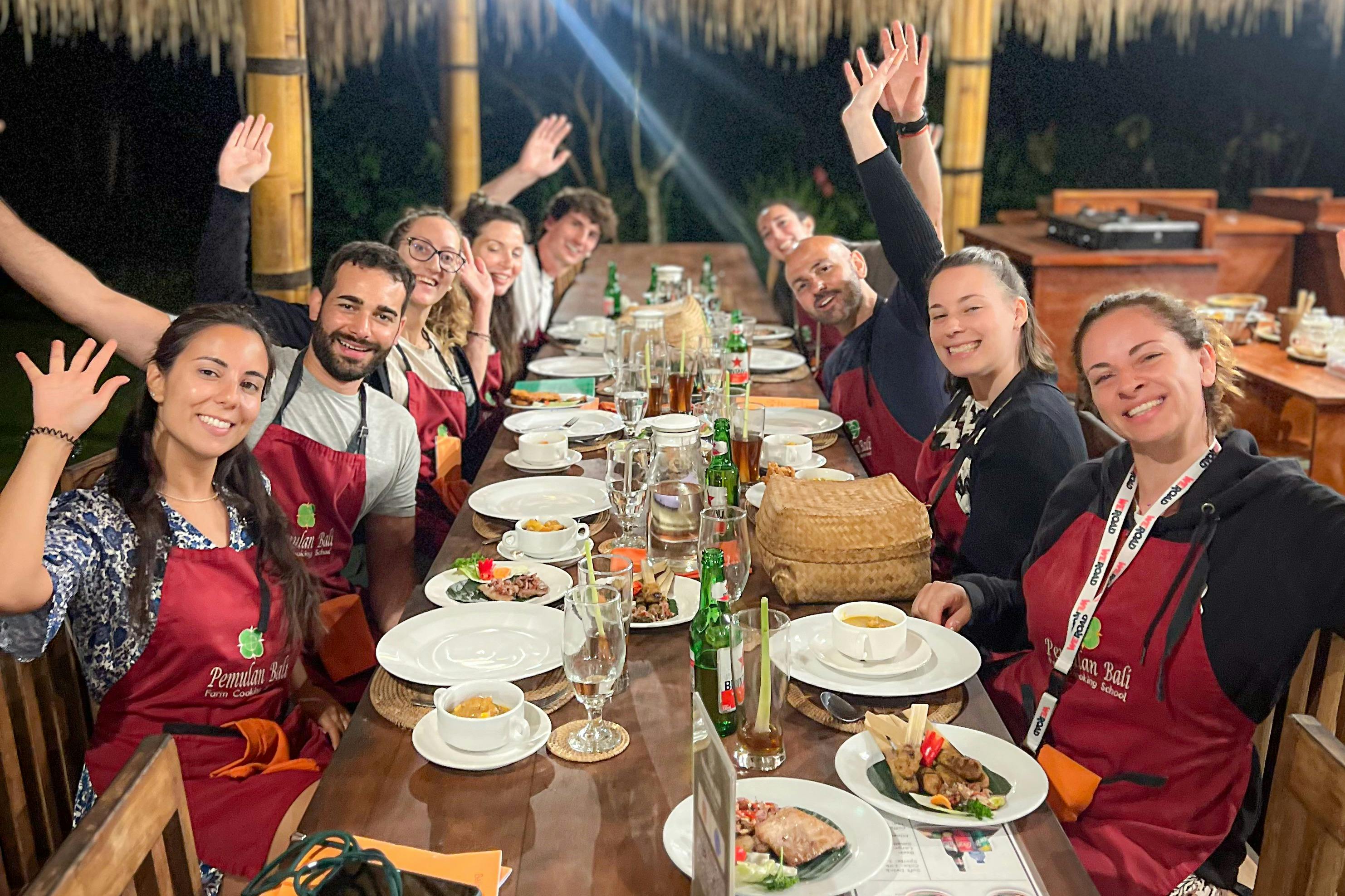 Visite d'une école de cuisine balinaise possédant sa propre ferme pour voir comment poussent les fruits, les légumes et les herbes et cueillir des ingrédients frais directement à la ferme. Profitez d'un moment paisible à la campagne et observez la vie quotidienne des villageois. Participez à la préparation de plats balinais avec des instructeurs locaux compétents en matière de tourisme et d'agriculture biologique. Faites l'expérience du travail d'équipe dans une cuisine en bambou bien entretenue et apprenez des instructeurs passionnés.