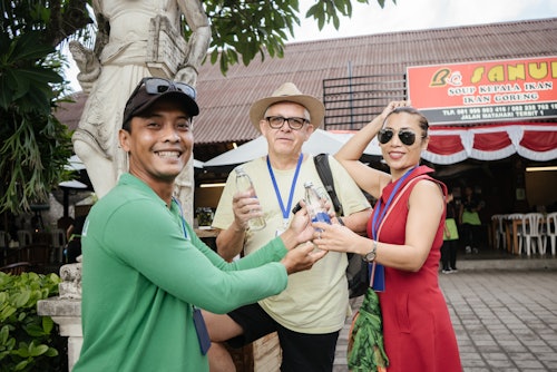Explorez le meilleur de Nusa Penida au cours de cette visite guidée d'une journée complète. Admirez les magnifiques plages de l'île, son littoral accidenté et son mode de vie décontracté, et découvrez pourquoi Nusa Penida est devenue la destination favorite des voyageurs. Partez de la gare maritime de Sanur en direction de Nusa Penida. Asseyez-vous et détendez-vous, et passez votre journée à faire le tour de quatre plages pittoresques et de certains des endroits les plus spéciaux de l'île. Arrêtez-vous d'abord au sommet de la plage de Kelingking et admirez la vue magnifique sur la plage de sable blanc. Regardez de près la courbe du littoral, que de nombreux visiteurs comparent à la forme d'un T-Rex. Ensuite, rendez-vous à Angel's Billabong et faites un plongeon dans une piscine naturelle à débordement - sans le prix d'un cinq étoiles - créée par une petite brèche dans la falaise. Ensuite, émerveillez-vous devant les piscines naturelles et les arches de falaise de Broken Beach avant de vous rendre à Crystal Bay où vous pourrez nager et faire de la plongée libre dans des eaux aussi claires que leur homonyme.
