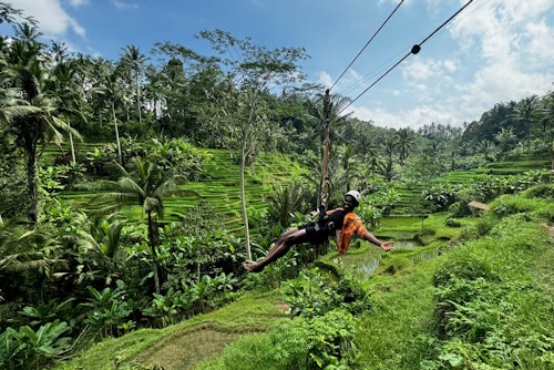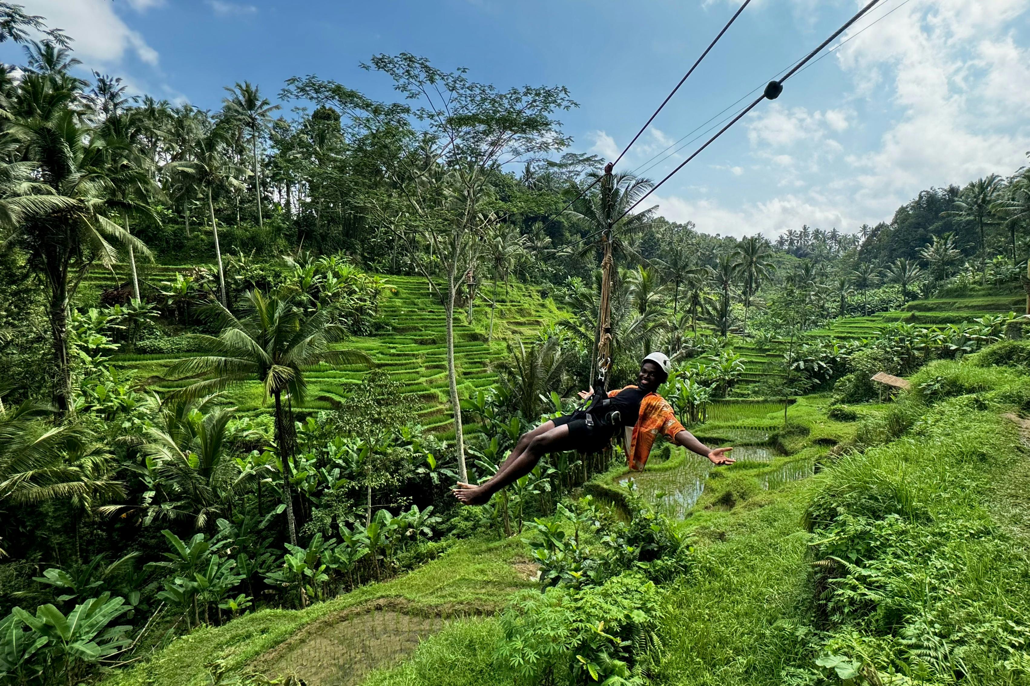 Visitez les rizières en terrasses de Bali lors d'une visite privée. Profitez d'activités telles que la balançoire Dream Catcher, la tyrolienne et le Sky Bike. Explorez sept sites photographiques, dont les Ailes de Bali, et découvrez la culture balinaise grâce à un guide compétent.