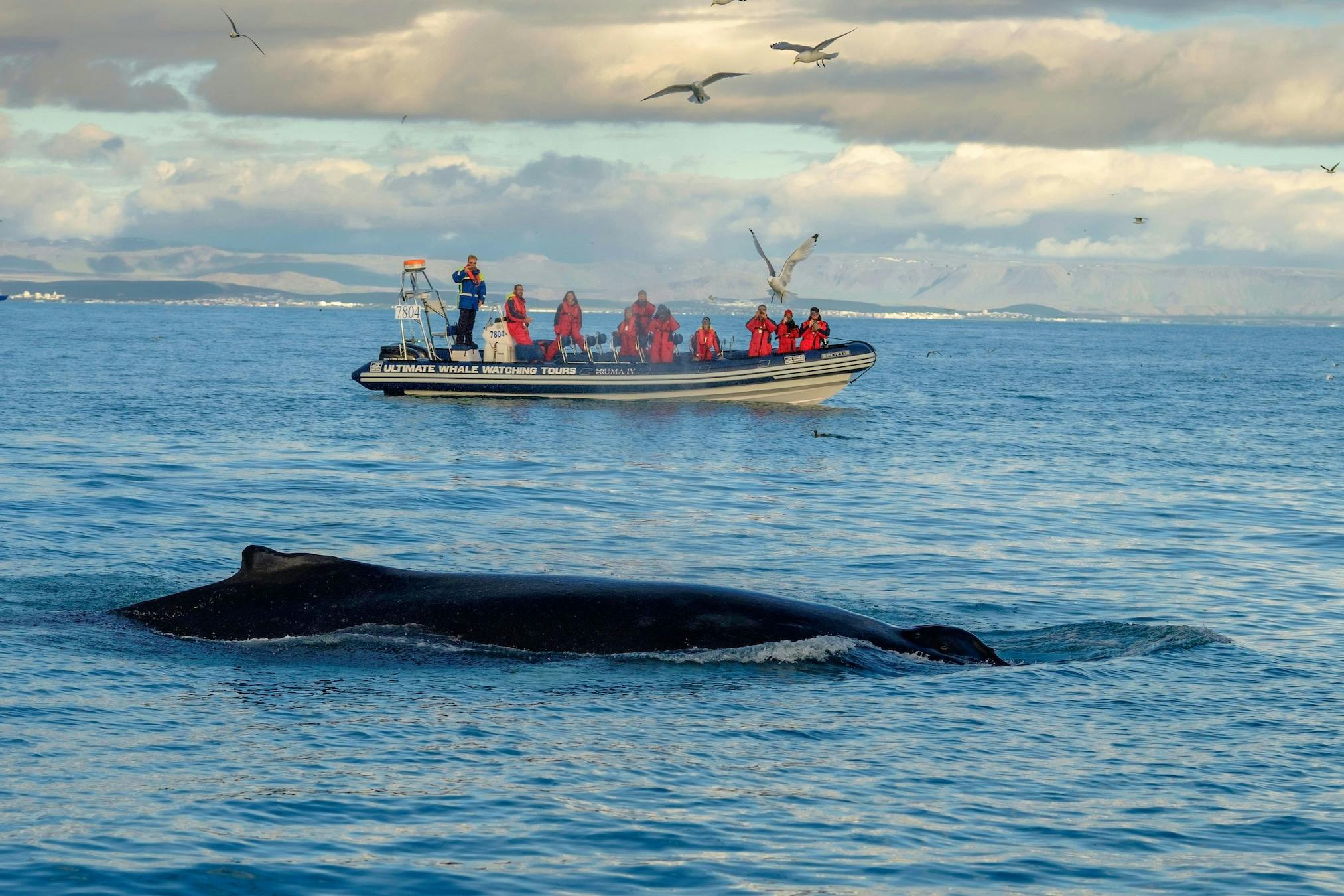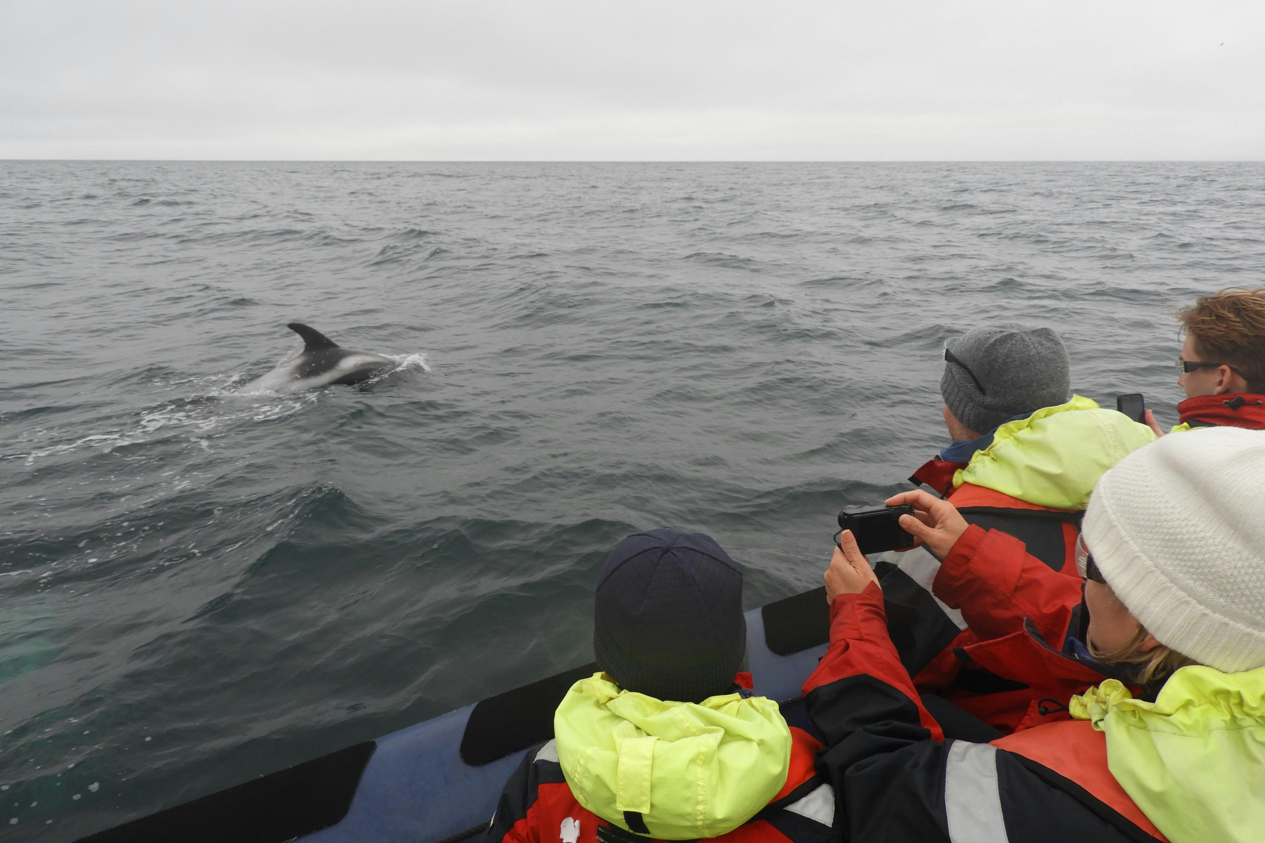Embarquez pour une excursion d'observation des baleines et des macareux depuis le vieux port de Reykjavík et gardez l'œil ouvert sur les baleines, les dauphins et différents oiseaux. Pendant la saison des macareux (de mai à fin août), vous aurez l'occasion de voir de jolies maisons de macareux depuis la sécurité d'un bateau semi-rigide équipé de confortables sièges suspendus. Ensuite, une croisière côtière pittoresque vous ramènera à Reykjavík pour une vue unique de la ville depuis la mer.