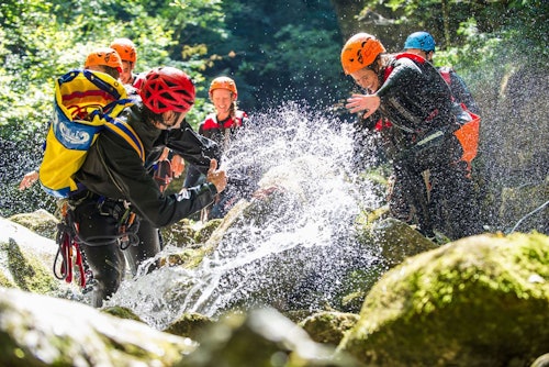 Guide de montagne UIAGM avec spécialisation en canyoning *Chaussures de canyoning *Combinaison et chaussettes en néoprène 5 mm *Casque *Harnais *Gilet de sauvetage *Transfert de courtoisie *Assurance responsabilité civile