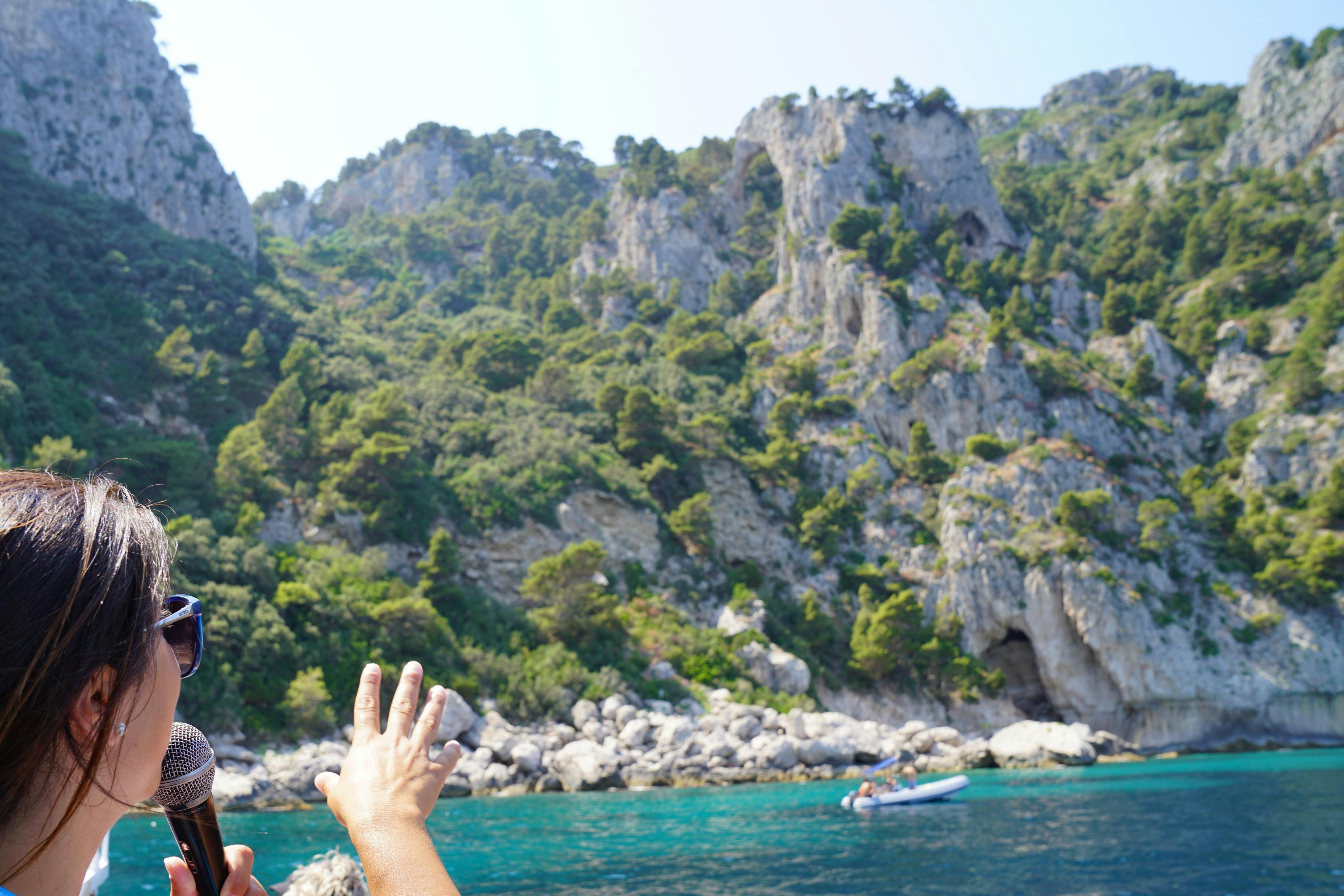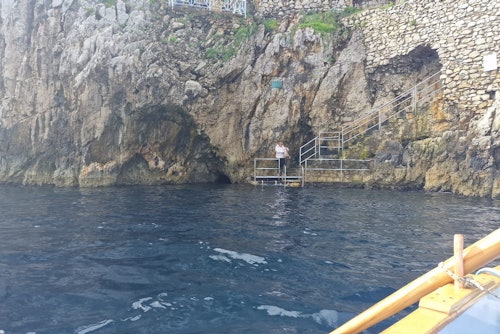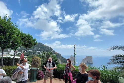 Commencez votre journée tôt, en évitant les longues files d'attente pour un voyage sans encombre. Après un trajet côtier, vous arrivez à Marina Grande. Un minibus vous emmène à l'entrée de la Grotte bleue. Montez à bord d'un bateau à aubes pour découvrir cette grotte aquatique unique. Visitez ensuite Anacapri, à l'écart des zones animées. Puis dirigez-vous vers Capri en empruntant la "Mamma Mia Road" pour rejoindre le centre animé. Explorez la ville à votre rythme. Prenez le funiculaire jusqu'au port et revenez à Marina Grande. Si le temps le permet, vous pouvez faire le tour de l'île en bateau ou retourner à Sorrente - ce voyage offre une grande variété de choses à faire !