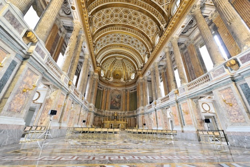 Participez à une visite guidée à pied du palais royal de Caserta, en explorant son histoire et son lien avec des films comme Star Wars. Profitez d'une entrée sans file d'attente et passez deux heures à découvrir l'architecture, les jardins et les histoires du palais.