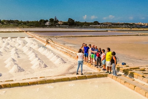 Participez à une visite guidée des salines, où vous découvrirez les méthodes de traitement du sel et l'architecture historique. Vous verrez la lagune de Stagnone et ses îles et apercevrez au loin les îles Egadi. Touchez le sel marin, connu sous le nom d'"or blanc". Il s'agit du premier site de production de sel certifié biologique en Italie.