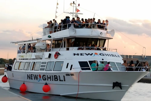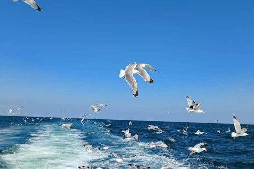 Partez pour une délicieuse demi-journée de bateau au départ de Milano Marittima, en longeant la côte adriatique italienne baignée de soleil. Pendant que vous glissez sur la mer scintillante, gardez l'œil ouvert pour apercevoir les dauphins qui s'amusent dans les vagues. Le voyage offre une perspective unique sur les plateformes industrielles et les plages de sable doré de la Romagne et des Marches. L'aventure commence à bord du Motonave Ghibli, un navire prêt à vous emmener dans les eaux libres de l'Adriatique. L'Émilie-Romagne est réputée pour ses délicieux fruits de mer, et le bar du bateau ne vous décevra pas. Dégustez une sélection alléchante de plats locaux, tout en profitant de la douce brise marine.