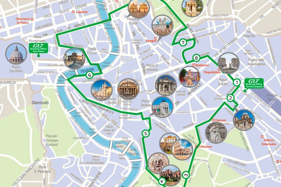 Rendez-vous à Rome depuis Cittavecchia (et retour) grâce à un transfert aller-retour facile en bus depuis le port et déposez-vous au cœur de Rome. Ensuite, visitez la Ville éternelle à bord d'un bus ouvert et d'un guide audio en 16 langues ! Montez et descendez aussi souvent que vous le souhaitez pour visiter des sites tels que le Colisée, la fontaine de Trevi, le Forum romain, le Palatin et le Vatican.