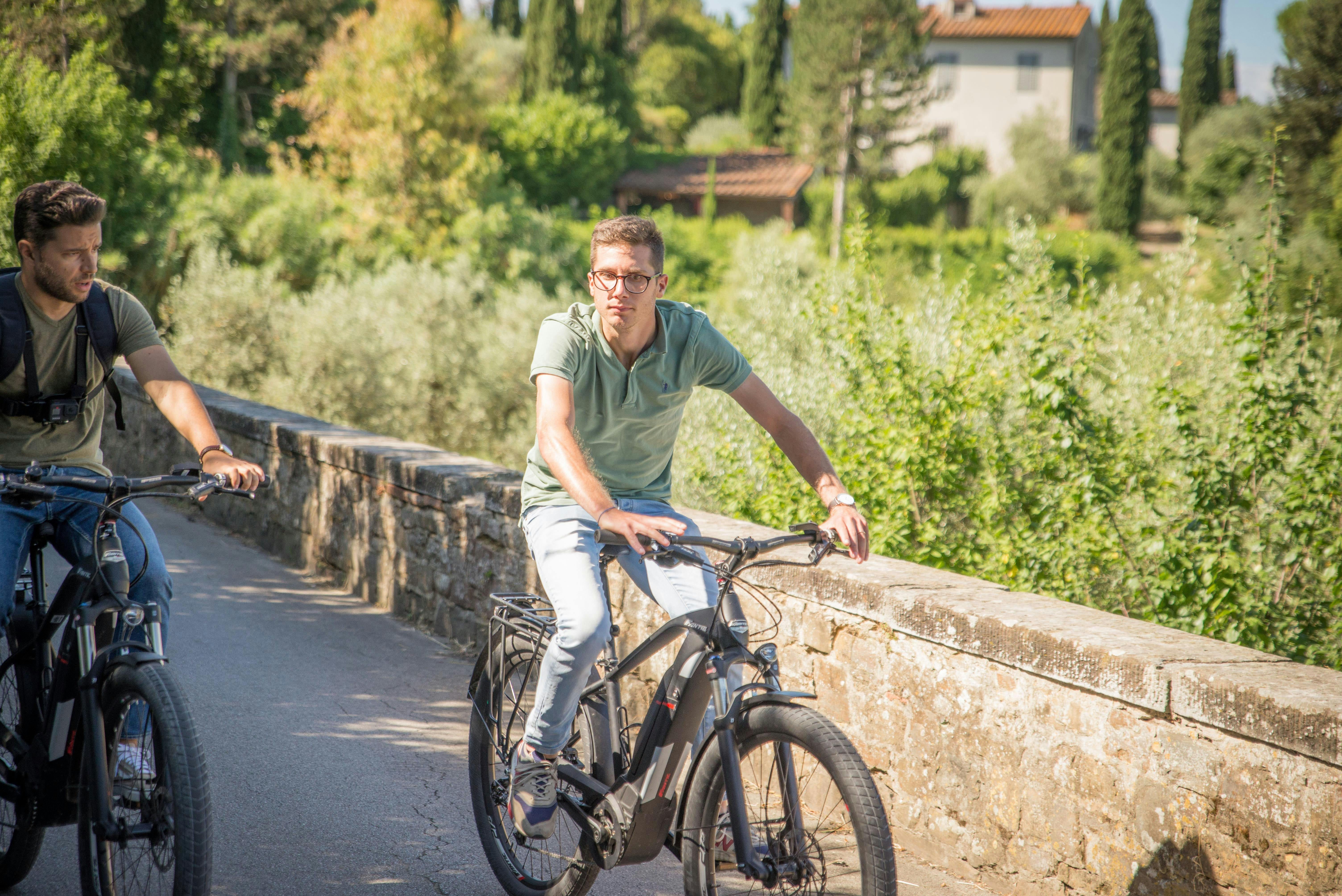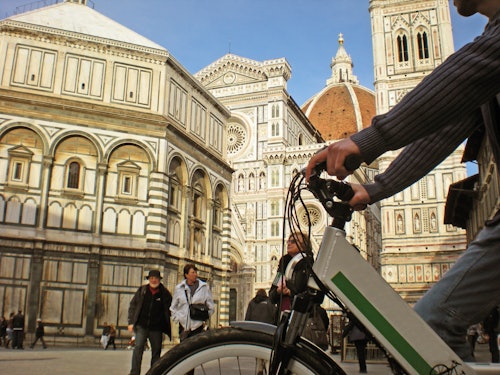 La marche à pied, c'est du passé. Ce billet pour la location d'un vélo électrique à Florence promet un plaisir de pédaler autour de toutes les attractions, à votre propre rythme. Suivez les itinéraires proposés ou partez seul à l'aventure. Les nouveaux vélos électriques vous permettent de voir beaucoup de choses avec peu d'efforts - c'est plus facile que de conduire un vélo ordinaire ! Toute personne sachant faire du vélo peut participer. Louez votre vélo électrique le matin et passez la journée à rouler le long des pistes cyclables et des rues sécurisées. Vous pouvez aussi vous rendre dans la campagne environnante de Florence et admirer le paysage depuis votre siège confortable. C'est votre ticket pour une architecture impressionnante, des vues à couper le souffle, de l'air frais et de fabuleuses photos.