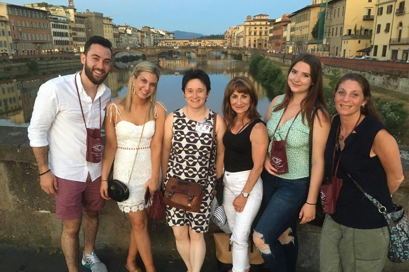 Alors que les touristes d'un jour commencent à disparaître au coucher du soleil, c'est à ce moment-là que cette visite guidée à pied de Florence prend tout son charme. Découvrez cette magnifique ville de la Renaissance sous son meilleur jour - pendant les heures dorées du coucher du soleil. En compagnie de votre guide professionnel, vous visiterez le quartier de l'Oltrarno et verrez ses boutiques d'antiquités et d'artisanat. Regardez les patios et les terrasses se remplir de Florentins résidents et dégustez un apéritif (ou deux) et des antipasti avec un vitner local. Ensuite, promenez-vous de l'autre côté de l'Arno pour voir le Ponte Vecchio, la Piazza della Signoria, et terminez votre visite sous le Duomo doré de Bruneschelli alors que le soleil se couche sur Florence.