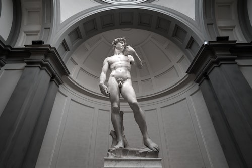 Visitez la Galleria dell'Accademia pour voir le célèbre David de Michel-Ange, ainsi que d'autres œuvres comme Les Prisonniers et Saint Matthieu. La galerie abrite également la Pietà de Palestrina, une œuvre attribuée par certains à Michel-Ange. L'Accademia est l'un des musées les plus populaires de Florence, après les Offices, et les files d'attente y sont souvent longues en raison de l'étroitesse de ses espaces et de l'affluence des visiteurs.