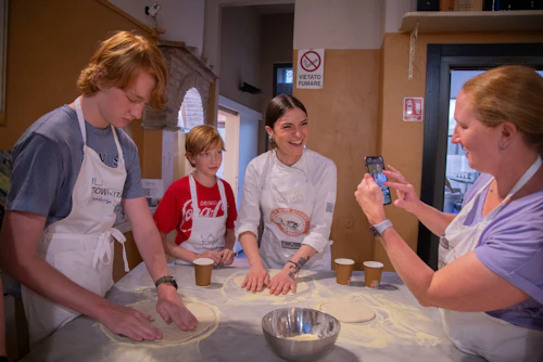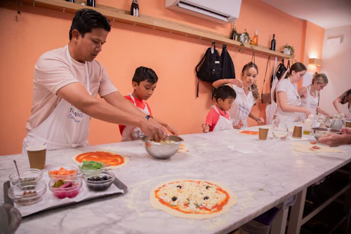 Apprenez à faire de la pizza et du gelato comme les Italiens ! Pendant ce cours en fin d'après-midi, les chefs vous feront découvrir l'histoire de ces glorieuses créations italiennes ! Fabrication de pizzas Rejoignez des pizzaiolos professionnels et préparez votre propre pizza. Vous l'étirerez, la saucierez, la ferez cuire et la trancherez. Ce sera peut-être la meilleure pizza que vous ayez jamais goûtée, et vous l'avez faite vous-même ! Pendant que la pâte repose, faites une pause pour savourer une sélection de vins et d'huiles d'olive Diadema de première qualité avant d'apprendre à faire du gelato. Fabrication de gelato : Vous fabriquerez également votre propre gelato et le cône correspondant ! Vous entendrez tout sur l'histoire de la glace italienne, découvrirez les ingrédients bruts et apprendrez où le meilleur gelato est fabriqué par votre chef cuisinier. Pendant que le gelato atteint la perfection, votre chef vous montrera comment combiner les ingrédients pour faire la pâte et cuire votre cornet. Vous recevrez également un livret de recettes, pour pouvoir cuisiner pour vos amis une fois rentré chez vous.