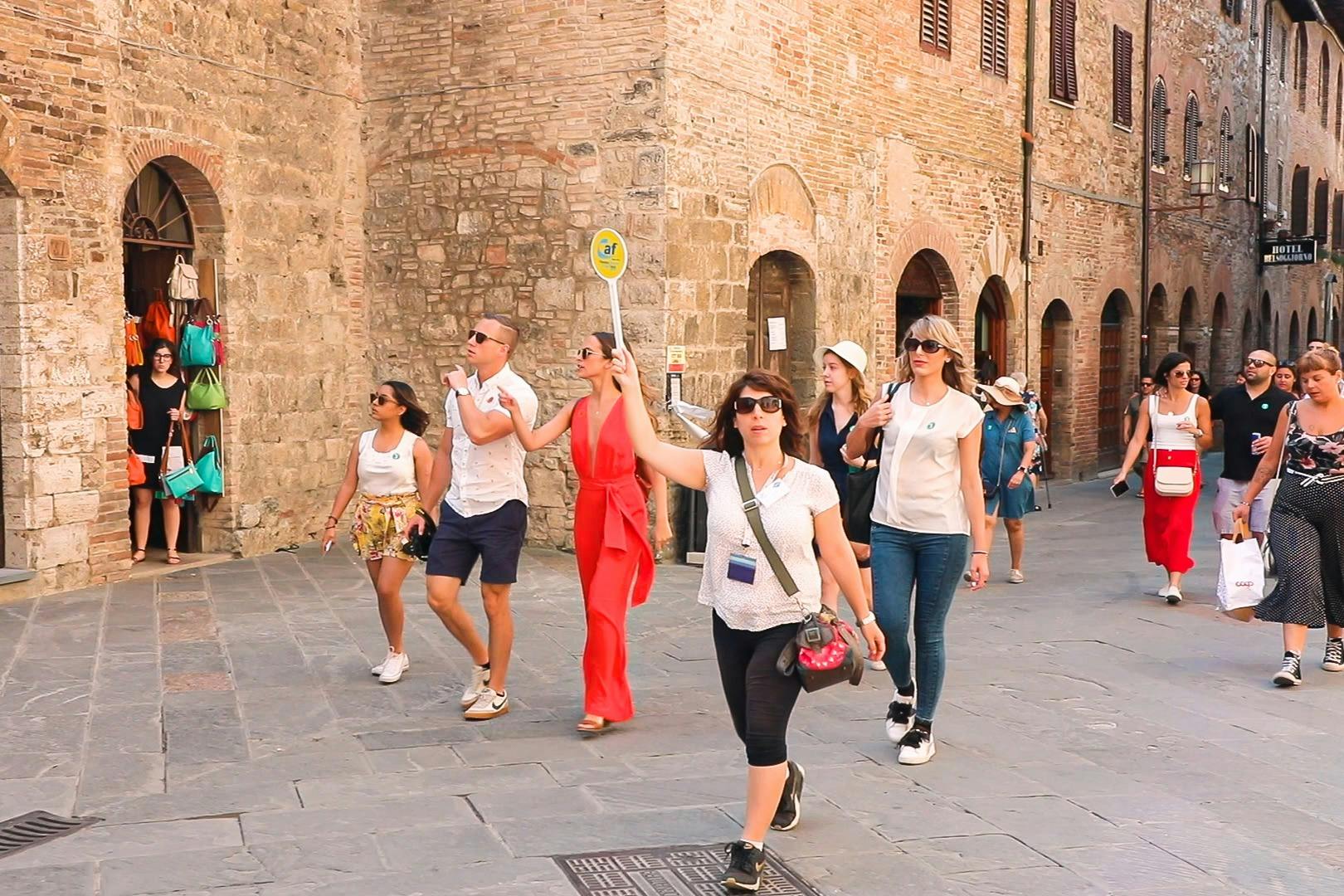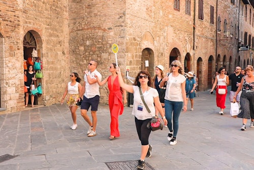 Préparez-vous à un voyage inoubliable en commençant par San Gimignano, une ville chargée d'histoire et réputée pour ses structures imposantes, ses fresques intrigantes et ses œuvres d'art d'une valeur inestimable. Ensuite, nous visiterons Monteriggioni, un charmant village médiéval entouré d'anciens murs qui ont résisté à l'épreuve du temps. L'excursion se poursuit ensuite dans les vignobles de Toscane, dans un domaine viticole accueillant. Appréciez une dégustation de trois vins fins et de vinaigre balsamique, suivie d'un délicieux repas de trois plats préparés avec des ingrédients locaux. À Sienne, un guide expert conduira une visite complète du centre-ville, avec du temps libre ensuite pour s'imprégner de l'atmosphère unique. Veuillez noter que de novembre à mars, l'excursion ne s'arrête pas à Monteriggioni et retourne à Florence 30 minutes plus tôt.