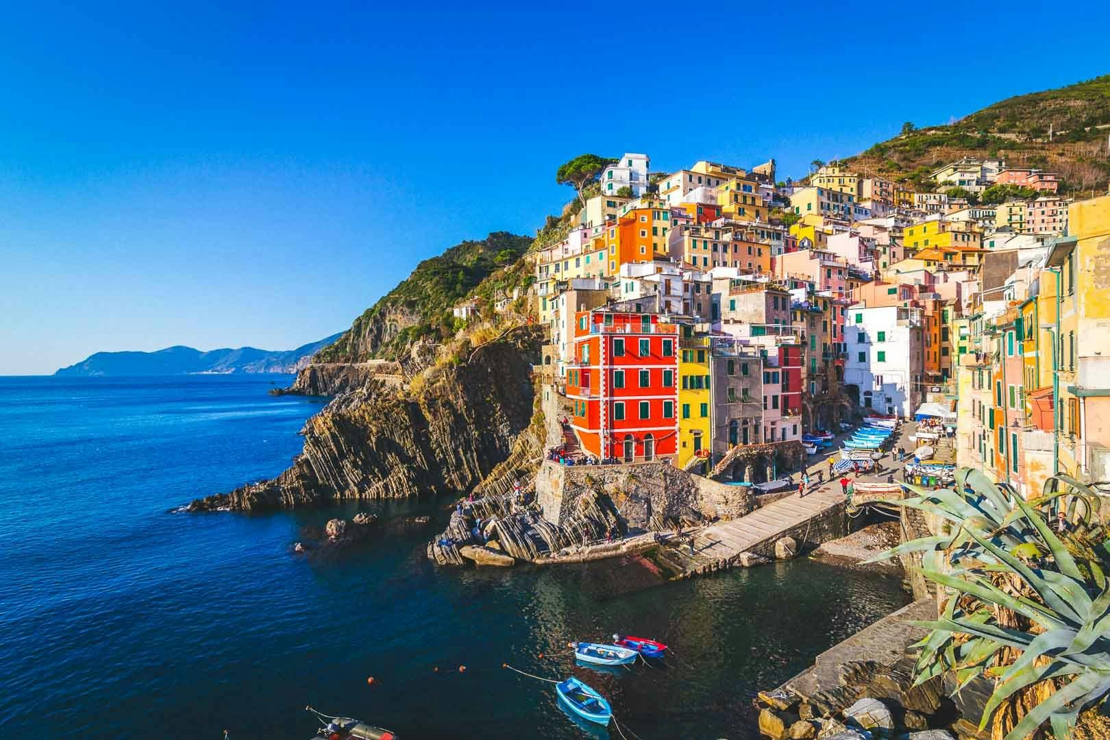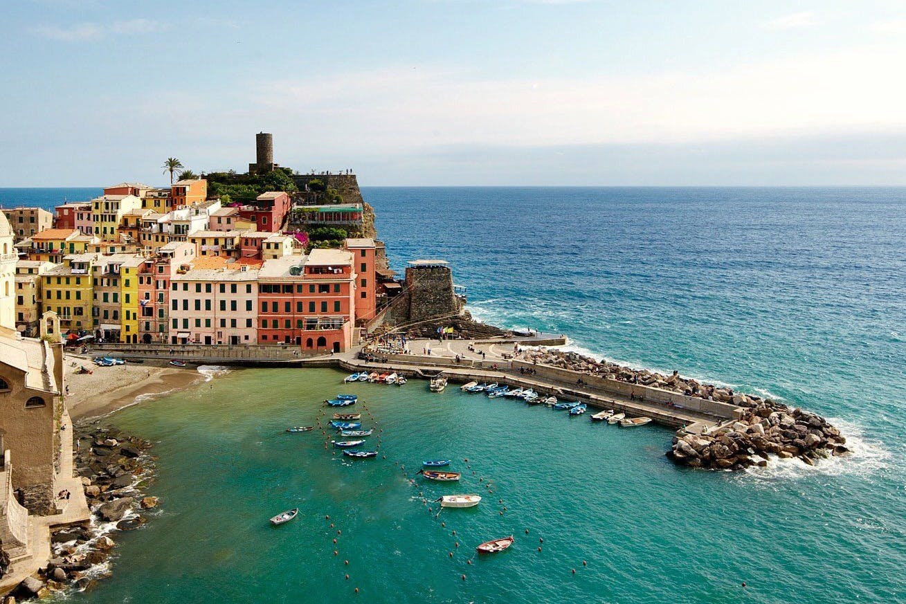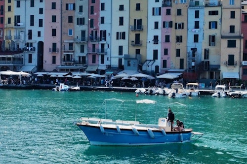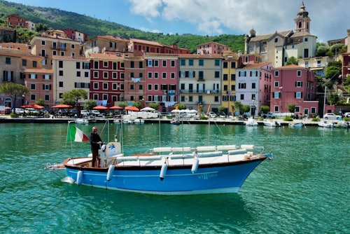 Commencez votre excursion à La Spezia, Lerici ou Porto Venere et admirez le golfe des Poètes. La première étape est Porto Venere, où vous verrez les maisons colorées des pêcheurs, le château de San Giorgio, l'église de San Pietro et la grotte de Byron. Ensuite, vous observez les roches rouges uniques, colorées par des bactéries pendant des millions d'années, et vous visitez la calanque de Monesteroli. Vers 11h30, dégustez une focaccia ligure accompagnée de Prosecco, de vin ou de boissons non alcoolisées, et baignez-vous dans une magnifique crique. Ensuite, direction l'aire marine protégée des Cinque Terre, en commençant par Riomaggiore, puis Manarola et Corniglia. Vers 13h30, vous pourrez vous baigner à nouveau près de Corniglia et déguster un plat de pâtes accompagné de Limoncello. Enfin, terminez votre visite à Vernazza et Monterosso.