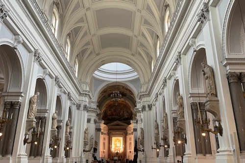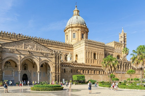 Visitez la cathédrale de Palerme et découvrez son histoire à l'aide de l'audioguide fourni pour des informations détaillées. Vous y verrez les tombes des rois siciliens et du frère de Guillaume le Conquérant. Construite au XIIe siècle, la cathédrale a changé au fil du temps. Découvrez son architecture unique, sa fonction de mosquée et son utilisation comme lieu de couronnement de la famille royale des Bourbons. Montez sur le toit pour admirer la vue sur Palerme et prenez des photos de la ville et du paysage qui s'étend jusqu'à la mer.