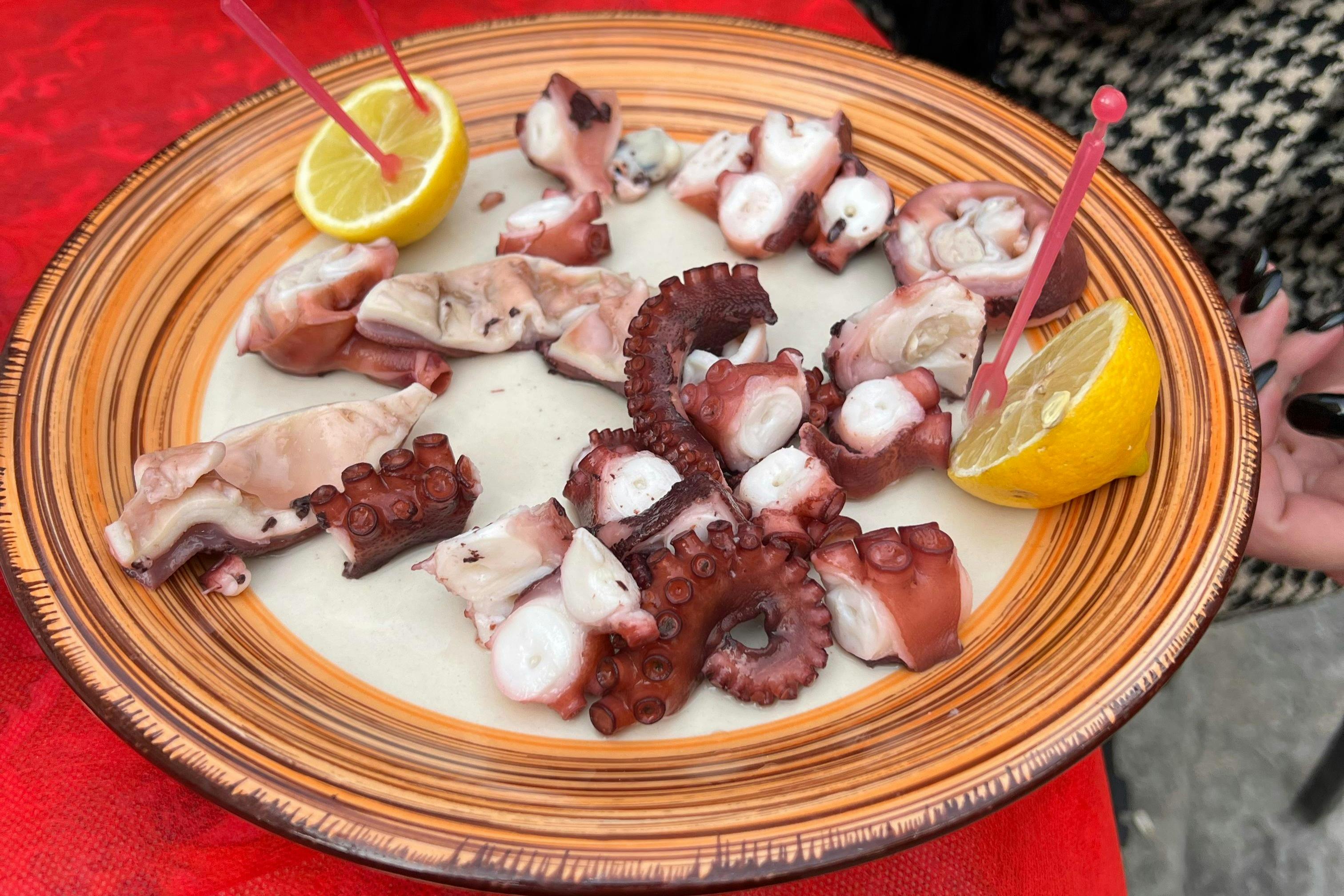 Visitez le marché Vucciria de Palerme lors d'une visite guidée sur la gastronomie. Promenez-vous parmi les étals traditionnels, goûtez les spécialités locales et découvrez la culture culinaire de la Sicile. Descendez les ruelles étroites de Vucciria, autrefois le marché le plus animé de la ville et aujourd'hui un lieu historique. Sentez les épices et écoutez les vendeurs locaux tout en goûtant des saveurs aux racines profondes. Allez voir le célèbre stand de poisson de Tonino. Choisissez du poisson frais et regardez Tonino le préparer - frit, grillé ou cuit à la poêle.