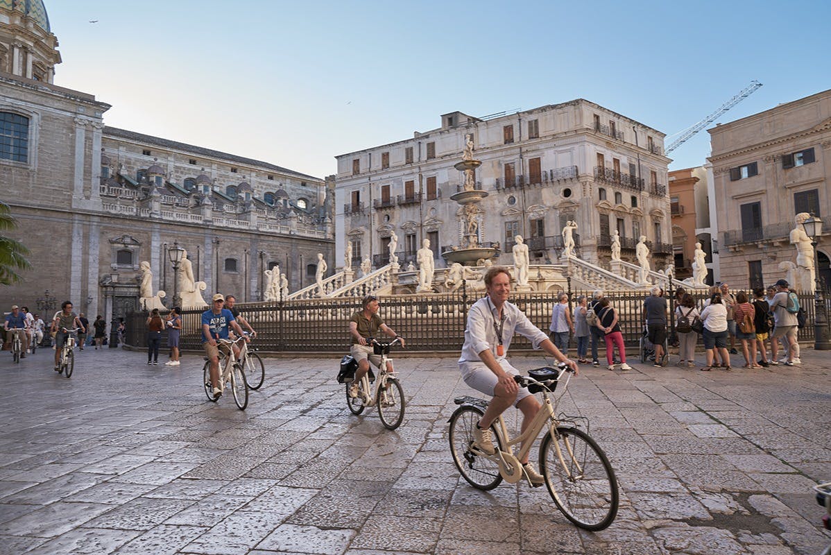 Découvrez la richesse de l'histoire et de l'architecture de Palerme, la capitale de la Sicile, lors d'une visite à vélo. Passez par la Piazza Bellini et la Piazza Pretoria et admirez des exemples d'art arabe, normand, byzantin et espagnol. Avec un guide, traversez des quartiers moins connus et découvrez des facettes de Palerme qui échappent à la plupart des visiteurs. Traversez à vélo des ruelles et des places calmes et goûtez à la cuisine de rue sicilienne.