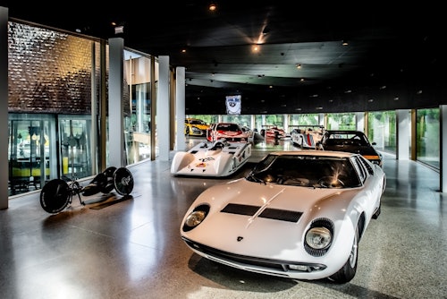 Visitez la Dallara Academy, un centre d'éducation et d'exposition créé par Giampaolo Dallara pour présenter plus de 50 ans de sport automobile. Le bâtiment, conçu par l'Atelier(s) Alfonso Femia, est doté d'une rampe en spirale en verre qui relie deux étages. Au rez-de-chaussée, on trouve des ateliers interactifs et des espaces ouverts. L'étage supérieur comprend des salles de classe de l'université MUNER et un auditorium. Découvrez des voitures comme la Miura, les IndyCars, les prototypes du Mans, la Formule 3, la Formule E et la Dallara Stradale. Un grand mur de verre et une disposition dynamique placent la course, la technologie et le design au premier plan. Cet espace célèbre les performances et l'avenir de l'ingénierie.