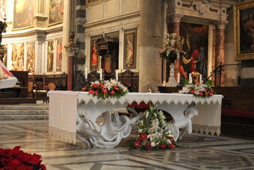 La cathédrale de Pise serait probablement le monument le plus célèbre de la ville, si ce n'était d'une certaine tour penchée... Avec cette visite, vous découvrirez les deux ! Le guide vous emmènera sur la Piazza dei Miracoli (la place des miracles) pour découvrir ses monuments emblématiques, connus pour leur style roman magnifique et unique. Vous visiterez l'intérieur de la cathédrale de Pise avec votre guide et vous aurez tout le temps de prendre des photos à l'intérieur et de vous imprégner de sa remarquable grandeur architecturale. Admirez la célèbre Tour penchée de Pise, le Baptistère de forme ronde entouré d'arcades à colonnes et le "Camposanto", à l'origine un cimetière, un extraordinaire cloître quadrangulaire. Laissez-vous captiver par votre guide qui vous régale de l'histoire de la structure penchée de la tour qui attise l'imagination (et les fils des médias sociaux !) de tous les visiteurs. Après environ une heure de visite guidée de la Piazza dei Miracoli, visitez l'intérieur de la tour penchée de Pise.