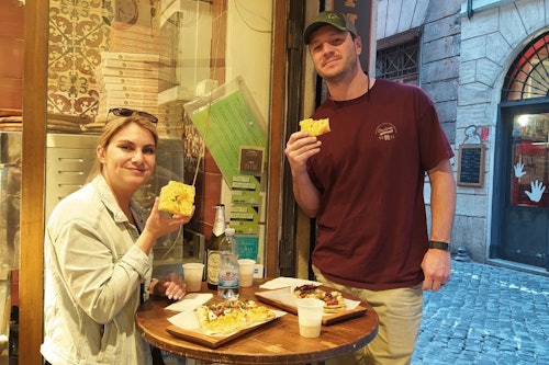 Visitez le centre ville énergique de Rome avec cette visite du "rione" Monti. Ce quartier, situé à un jet de pierre du Colisée, séduit par son labyrinthe de petites rues et de places pittoresques, où les habitants profitent de la dolce vita. La visite promet une expérience irrésistible de dégustation d'au moins huit variétés de pizzas délicieuses. De l'indémodable Margherita à la pizza rossa, en passant par l'unique pizza fritta et la tiella con scarola, c'est un banquet qui vous fera joyeusement sauter le dîner. Chaque tournant dans le quartier Monti dévoile des curiosités uniques, esquissant un portrait vibrant de la richesse de la culture et du mode de vie de Rome. La visite se termine à quelques pas de deux des plus célèbres monuments de Rome, le Colisée et la Piazza Venezia.