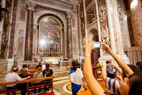 Rapprochez-vous le plus possible du paradis grâce à une visite guidée de la basilique Saint-Pierre et de la coupole. Rejoignez votre guide pour un délicieux petit-déjeuner au bar "Al San Michele", point de départ idéal pour votre aventure inoubliable au Vatican. Admirez le dôme de la basilique, le point architectural le plus élevé de Rome, et profitez de la vue imprenable sur la Ville éternelle. Explorez les jardins du Vatican, le toit de la chapelle Sixtine et la cheminée du conclave papal, tandis que votre guide vous raconte l'histoire de cette architecture envoûtante. Prenez l'ascenseur jusqu'à la base de la coupole, puis montez les escaliers jusqu'au sommet pour profiter d'une vue imprenable sur la ville. Visitez la basilique Saint-Pierre, où vous verrez l'endroit où Saint-Pierre a été enterré et découvrirez certains des endroits secrets et cachés au cœur de la Rome catholique. C'est une visite inoubliable !