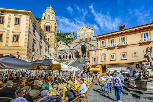 Montez à bord pour une belle aventure sur la grande bleue, de Sorrente à l'enchanteresse baie de Nerano, où l'époustouflante côte amalfitaine vous attend pour vous en mettre plein la vue ! Admirez l'île de Li Galli, découvrez la magie du majestueux Fiordo di Furore et pointez vos appareils photo en direction de la pittoresque Praiano. Votre capitaine vous indiquera également le joyau caché de Fiordo di Crapolla et l'intriguant îlot "d'Iscra". Profitez d'un peu de temps libre pour explorer à pied les villes emblématiques d'Amalfi et de Positano. Flânez dans les rues pittoresques, goûtez à la délicieuse cuisine locale et imprégnez-vous de l'atmosphère vibrante de ces jolis havres côtiers.