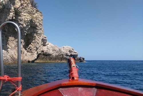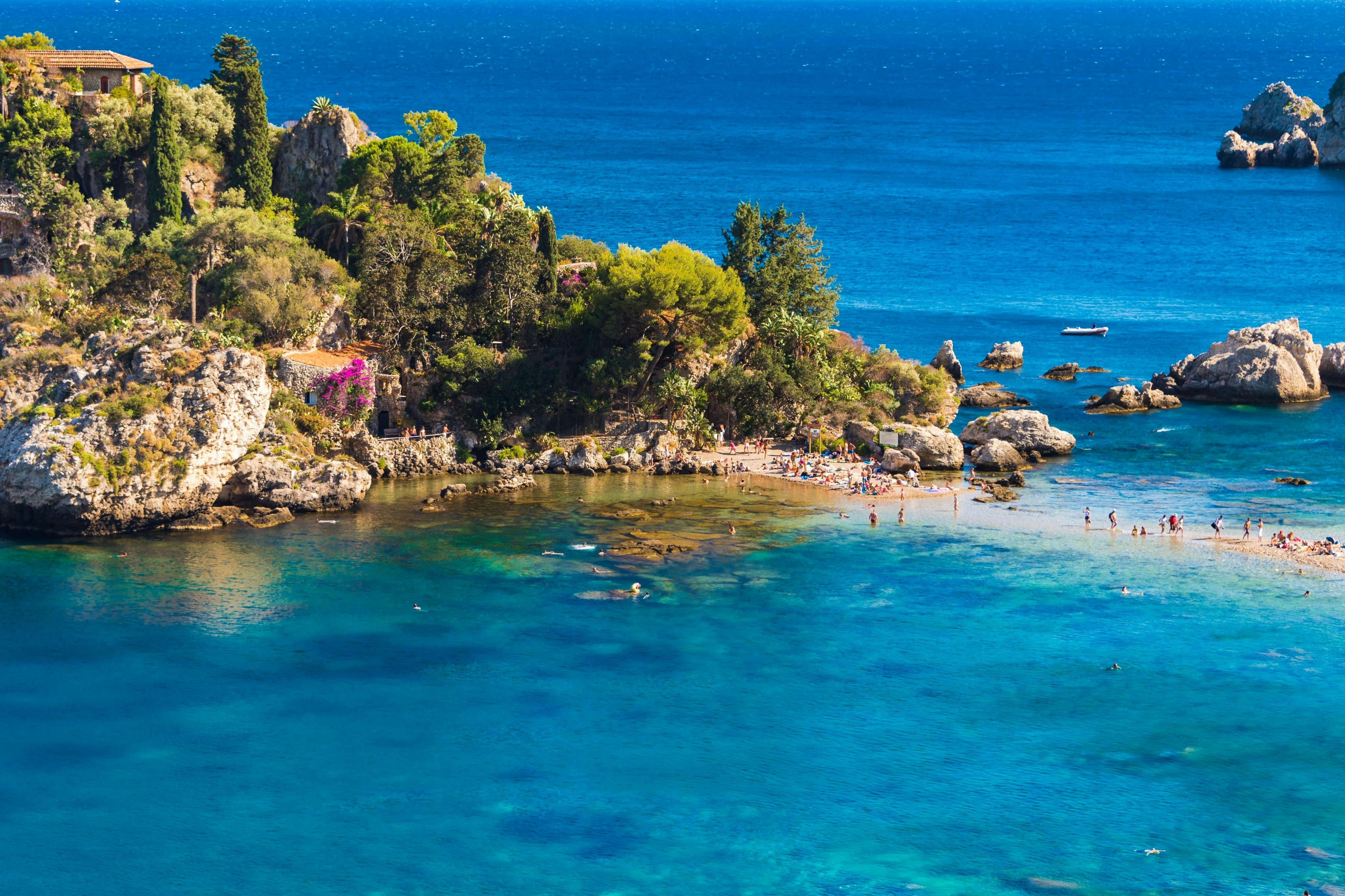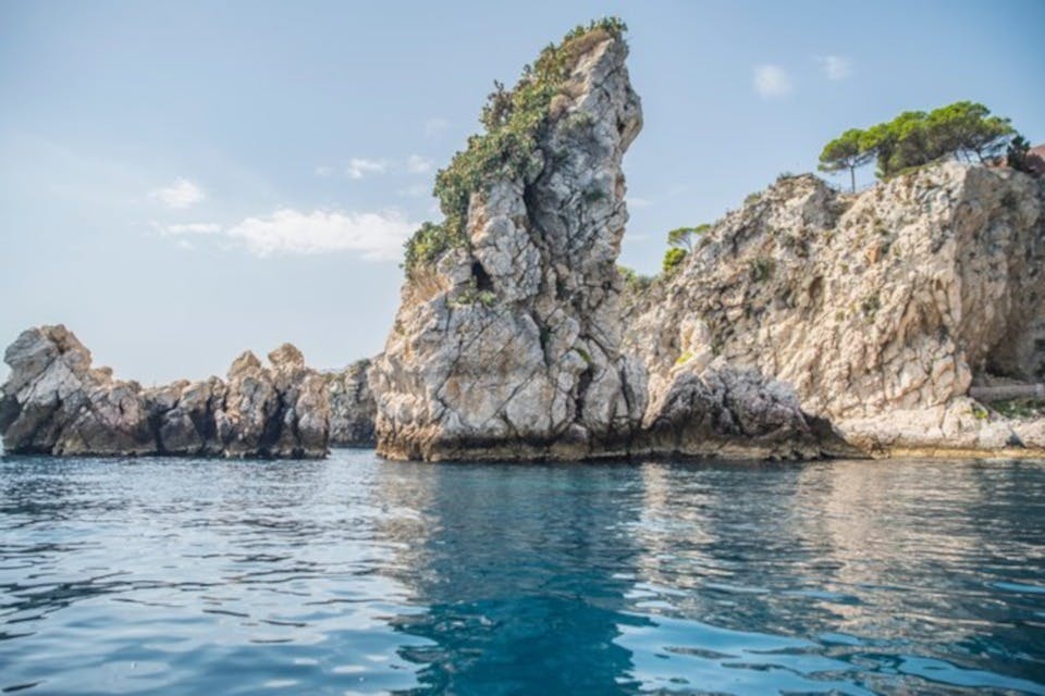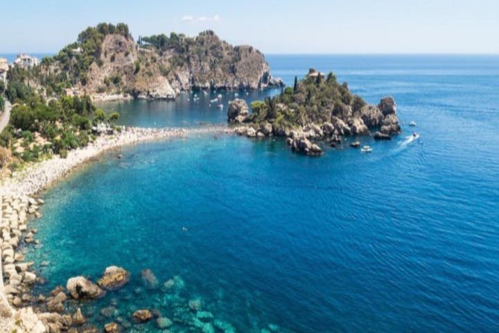 Visitez l'un des hauts lieux de la Sicile. Admirez le Monte Tauro et les villes de Taormine et Castelmola depuis la mer. Ces lieux attirent toujours les artistes, les poètes et les voyageurs. Admirez l'Isola Bella, connue pour sa flore et sa faune uniques. Ce site naturel a été commandé par un aristocrate anglais exilé en Sicile par la reine Victoria I. Montez à bord d'un bateau équipé pour la sécurité et écoutez le capitaine vous raconter des histoires de mythes et de légendes. Savourez un apéritif rafraîchissant et dégustez des pâtisseries siciliennes aux amandes.