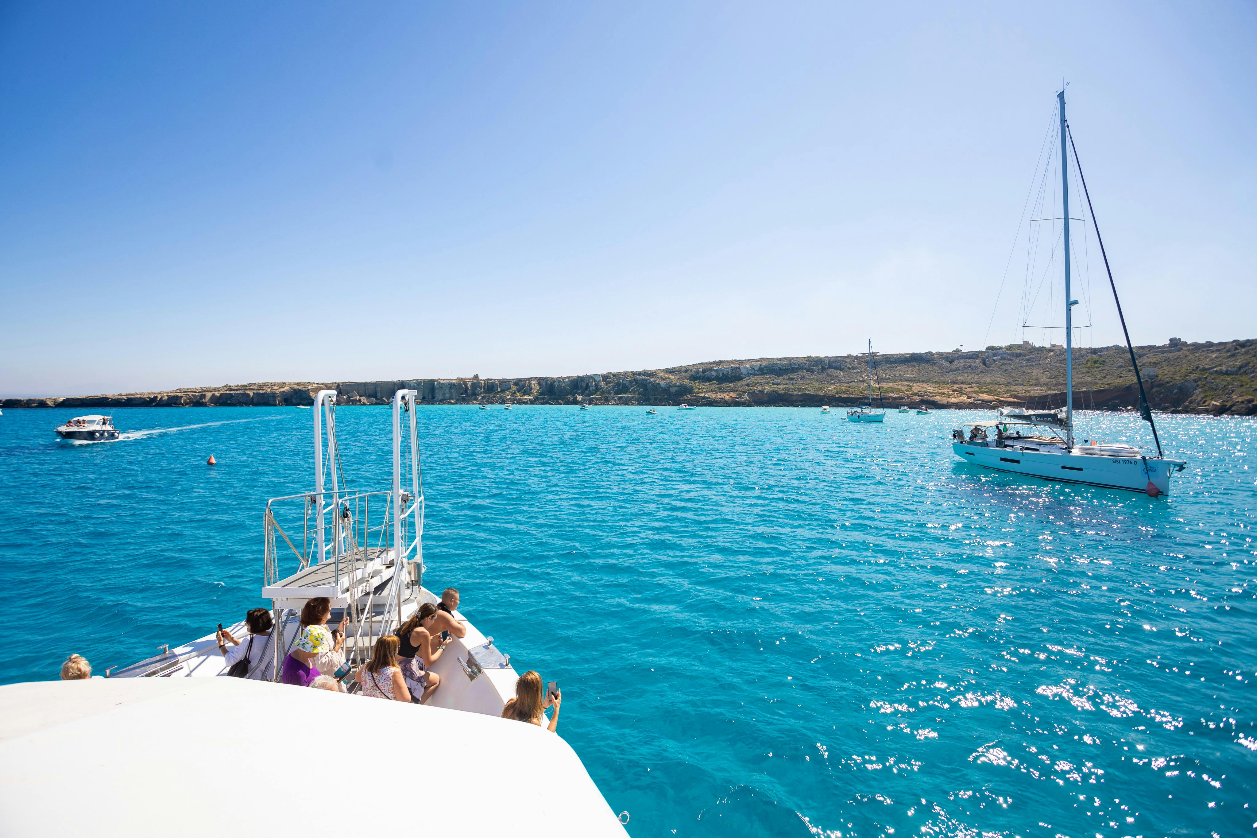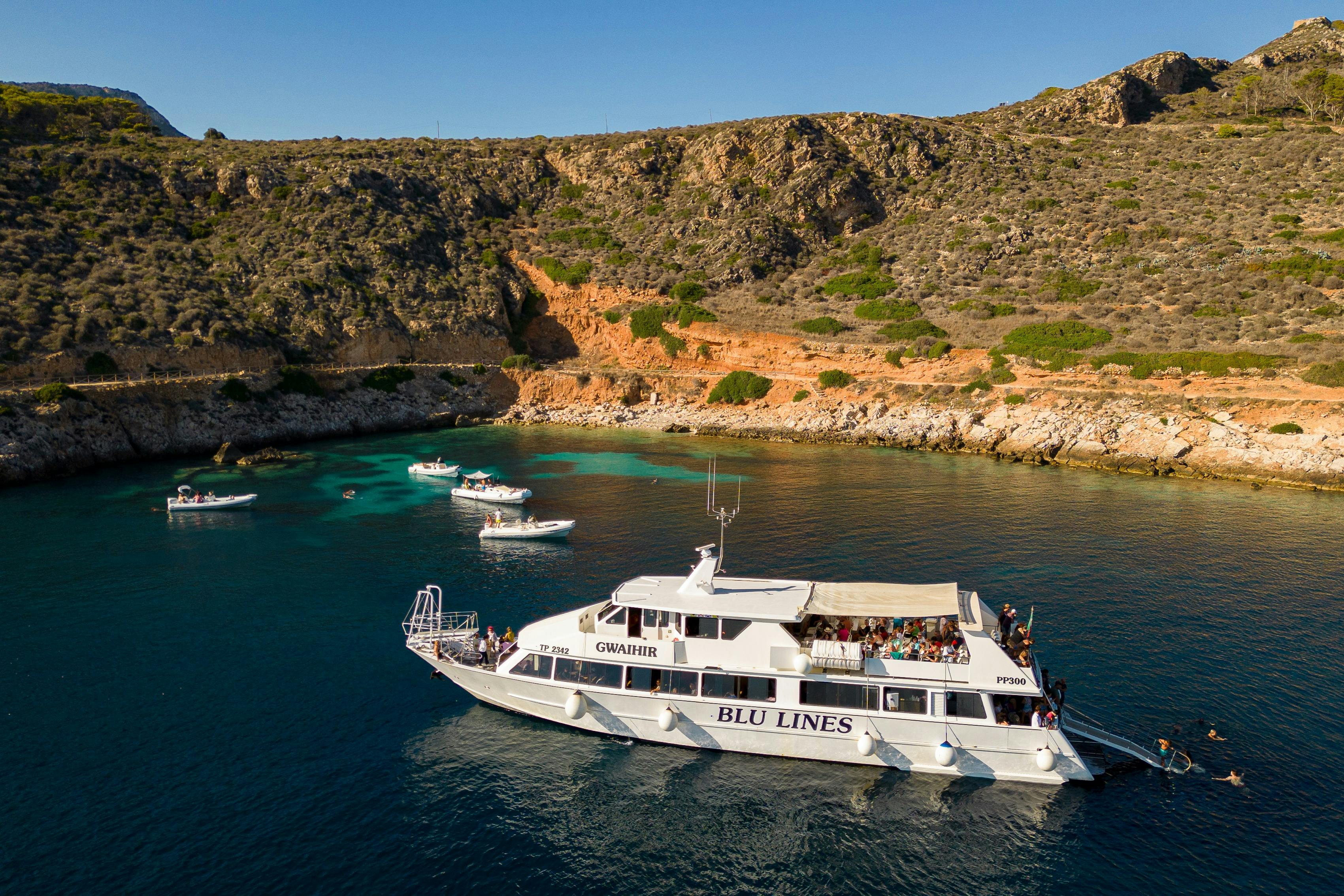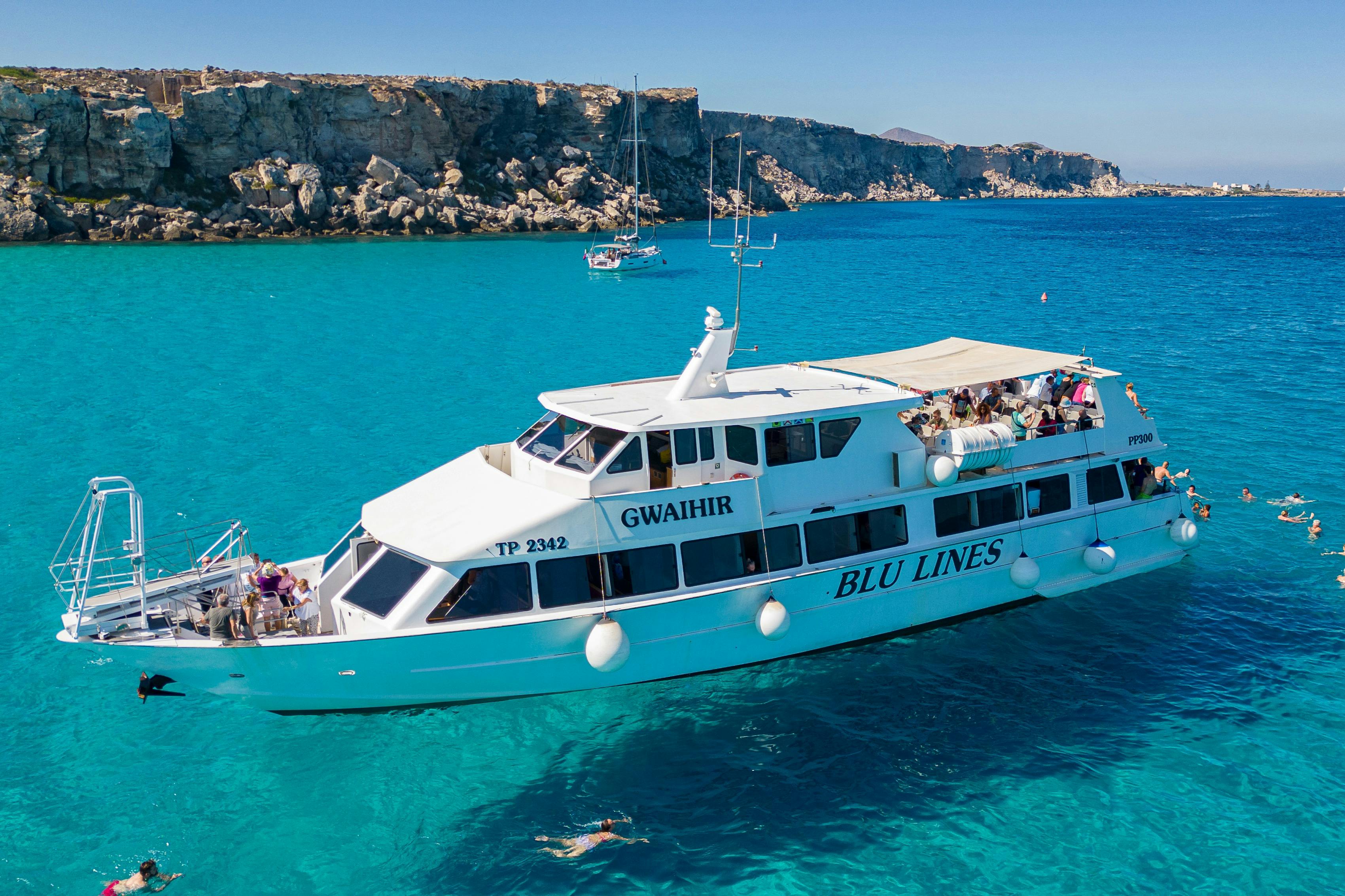 Début de la visite des îles Favignana et Levanzo depuis le port de Trapani. Arrivée à Favignana et temps libre pour explorer la ville, faire du shopping, visiter le musée de la Tonnara de Favignana ou se baigner sur la plage près du port. Retournez au bateau et commencez le tour de l'île le long de la côte, en notant les endroits clés comme Scalo Cavallo, Cala Rossa, Grotta del Bue Marino, et la plage de Cala Azzurra. Arrêtez-vous à l'un de ces endroits pour vous baigner et dégustez un déjeuner traditionnel de Trapani sur le bateau. Après le déjeuner, vous vous rendrez à la Cala Faraglione de Levanzo pour un temps libre d'exploration. Passez par d'autres endroits comme Cala Fredda et Cala Minnola. Retour à Trapani dans la soirée.