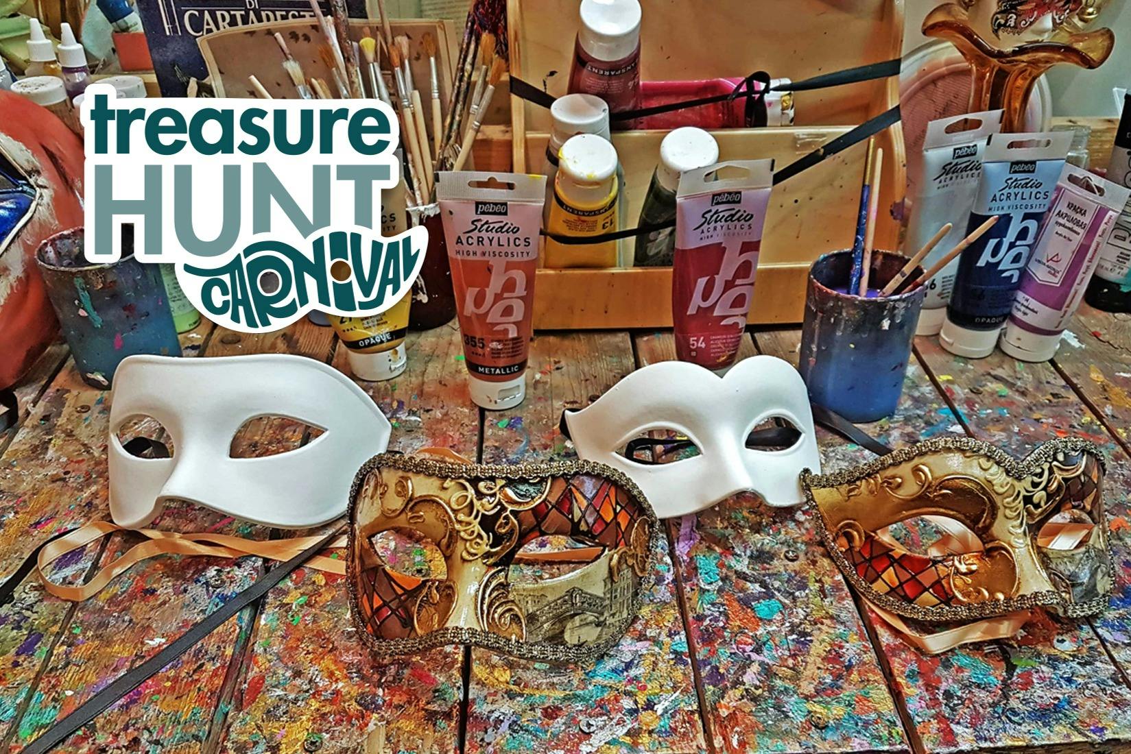 Préparez-vous à une chasse au trésor qui vous emmènera dans la ville romantique de Venise pendant la saison du carnaval. Au point de rencontre, vous recevrez une carte en papier, vous téléchargerez une application astucieuse pour vous guider et vous recevrez toutes les instructions du jeu. L'application, facilement utilisable sur votre téléphone ou votre tablette, vous indiquera l'itinéraire de la chasse au trésor tout en vous faisant découvrir des contes et légendes fascinants sur les points d'intérêt qui jalonnent le parcours. Votre mission ? Trouver au moins trois des quatre endroits cachés sur le parcours de la chasse au trésor et prendre une photo comme preuve. À la fin, vous présenterez votre preuve photographique à l'équipe. La récompense ? Un masque de carnaval d'un blanc immaculé, prêt à être transformé en œuvre d'art sur place avec l'aide d'un fabricant de masques expérimenté.