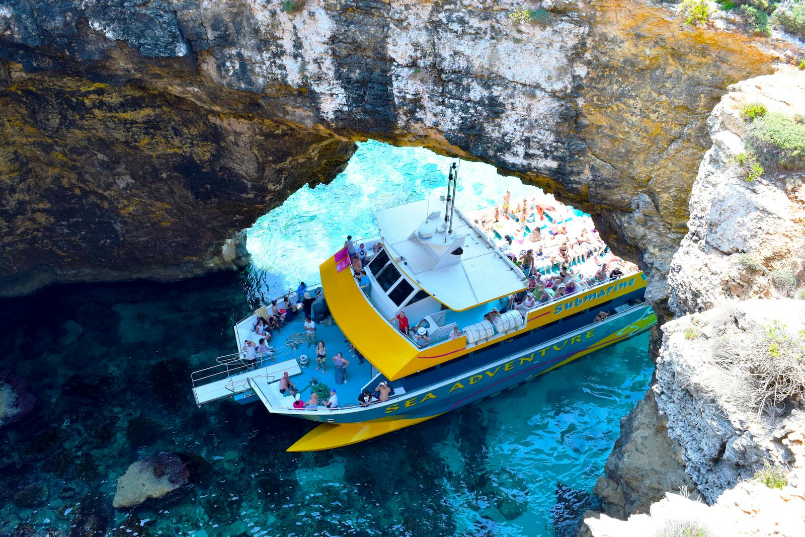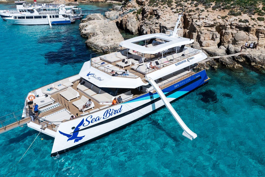 Prêt pour une aventure jusqu'au Lagon Bleu ? Montez à bord d'un bateau et commencez votre voyage d'une heure à Comino. La visite est parfaite, avec vue sur la magnifique côte, les splendides falaises de Malte et la mer cristalline. Passez devant la minuscule île de Saint-Paul et admirez la statue de l'apôtre qui s'élève dans le ciel. Vous naviguerez également dans des grottes marines spectaculaires, ce qui vous permettra de prendre des photos parfaites depuis le bateau. Entre juin et octobre (si les conditions météorologiques sont bonnes), vous pourrez visiter le Crystal Lagoon, moins connu mais tout aussi beau. Entouré de falaises abruptes et accessible uniquement par bateau, c'est un vrai régal que peu de gens ont la chance de voir. Vous apercevrez également un naufrage caché, que vous pourrez admirer depuis l'un des 26 hublots sous-marins, avant d'arriver au Lagon Bleu. Vous vous arrêterez dans un endroit incroyable et utiliserez le bateau comme base pour le reste de la journée.