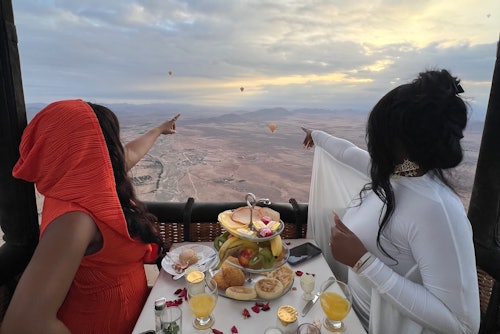 Vol en montgolfière au-dessus de Marrakech au lever du soleil. Depuis les airs, vous pourrez admirer la ville de Marrakech, le désert et les montagnes de l'Atlas. Participez à cette activité avec un guide professionnel pour assurer la sécurité et le confort tout au long du voyage. Profitez d'un petit-déjeuner traditionnel avant le vol.