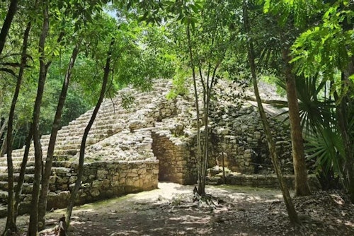 Faites un voyage envoûtant au cœur de l'ancienne civilisation maya à Cobá. Tandis que vous serpentez sur des chemins pavés usés par le temps, les secrets énigmatiques de la ville se dévoilent, mis en lumière par votre guide passionné et profondément attaché à l'histoire et à l'archéologie mayas. Restez bouche bée devant l'imposante pyramide de Nohoch Mul et admirez les stèles détaillées et les temples sacrés qui résonnent des récits d'anciens rituels. Ressentez l'énergie mystique des terrains de jeu de balle, qui rappellent l'époque où le sport régnait sur la société. Explorez la grandeur des routes sacrées et des anciennes autoroutes qui reliaient autrefois les coins les plus reculés de la ville.