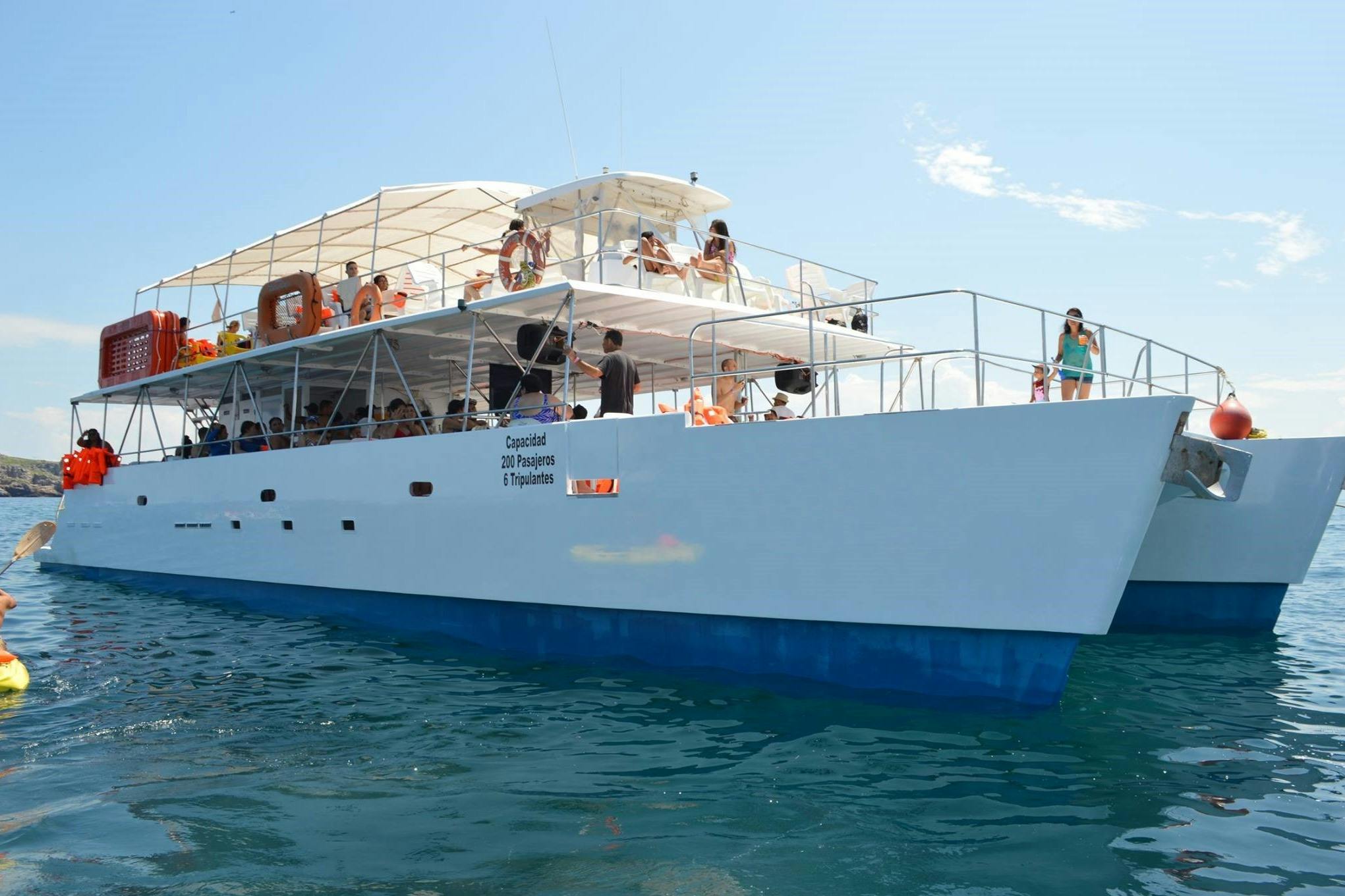 Préparez-vous à être enchantés lorsque la journée commencera à 7h15 AM à l'emblématique "Puerto Mágico Puerto Vallarta", niché au cœur du Blvd. Francisco Medina Ascencio, Zona Hotelera Norte, 48333. Montez à bord et laissez l'aventure se dérouler, avec un petit-déjeuner qui éveille les sens, suivi d'un somptueux repas et d'un open bar - ajoutant une touche de luxe à l'escapade nautique. Après un voyage palpitant de 90 minutes, vous découvrirez le magnifique parc national aquatique des Islas Marietas, où la magie et la beauté sont à leur apogée. Plongez dans une séance de plongée avec masque et tuba de 25 à 35 minutes, guidé par des experts à travers chaque vague. Mais l'aventure aquatique ne s'arrête pas là ! Choisissez entre le kayak et le paddleboard pour explorer les eaux cristallines qui entourent les îles. Une fois toutes les activités aquatiques cochées sur la liste, il est temps de se rendre à Playa La Nopalera. Réservez ce billet dès maintenant et embarquez pour un voyage inoubliable !